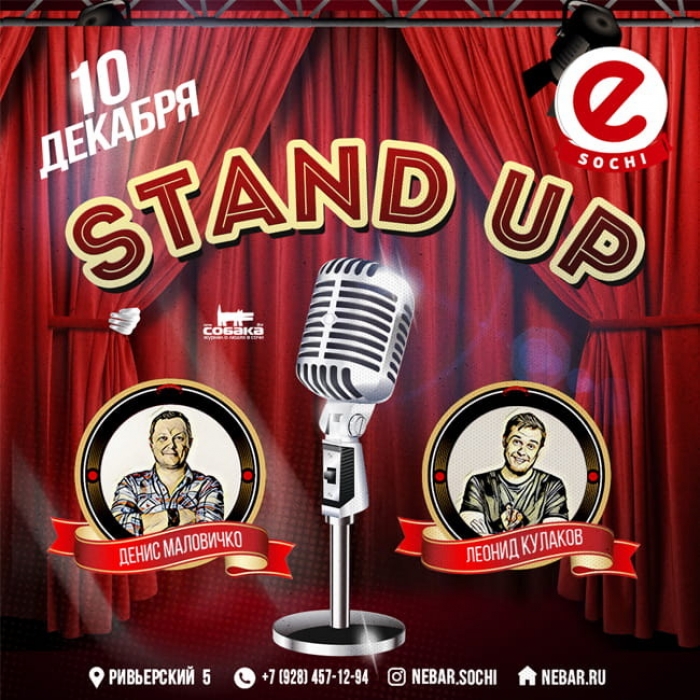 Вечер юмора в Nebar Sochi. Только в это воскресенье Stand Up комедия от полуфиналистов проекта Comedy Battle на ТНТ, участников шоу "Не спать" и "Открытый микрофон" на ТНТ Леонида Кулакова и Дениса Маловичко.