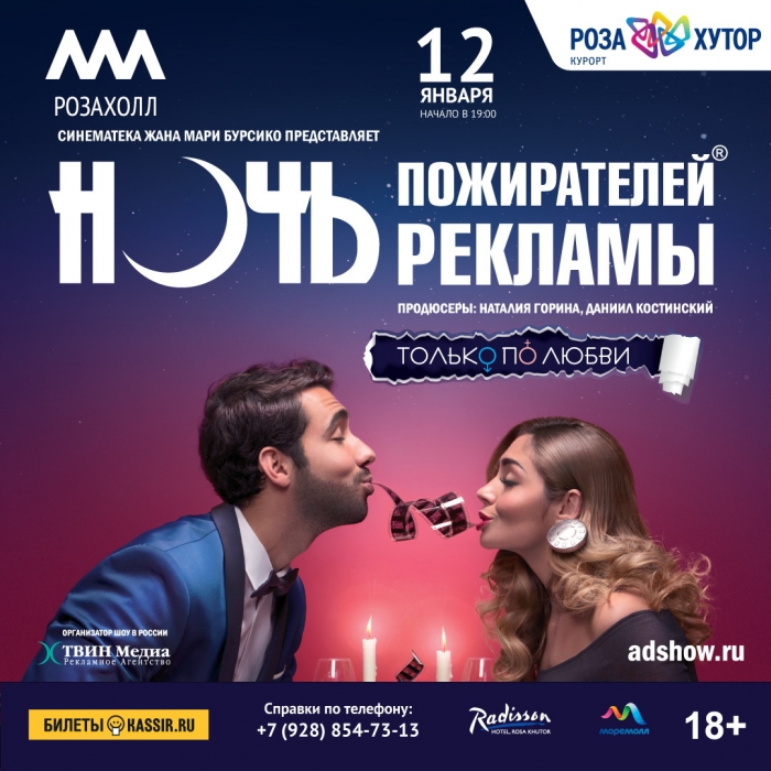 Программа 2017 года, составленная знаменитым французом лично, уже произвела неизгладимое впечатление на гостей мероприятия во многих городах мира. Основная тема показа — любовь, в том числе и к рекламе. В программе будет продемонстрировано более 400 рекламных шедевров: новинки рекламного искусства, ролики с участием звезд мировой величины, самые скандальные, шокирующие и захватывающие ролики без цензуры! Качественная реклама, которая представлена на «Ночи», доставит наслаждение неожиданными решениями, оригинальностью идей и их воплощения. Наконец-то реклама не прервется художественными фильмами!