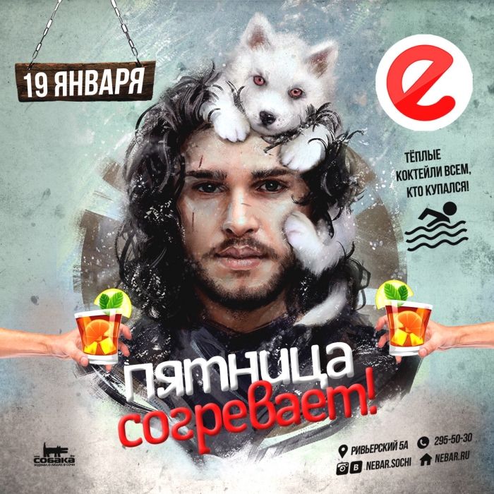 Согревающие коктейли от Небара, всем кто купался в эту ночь. Если рискнешь искупаться в баре, получишь бутылку алкоголя.