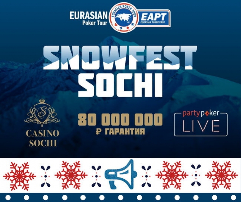 Солидная гарантия, именитые игроки, дружеская атмосфера — и все это в окружении умопомрачительных заснеженных вершин — отличный повод, чтобы оказаться в Сочи. Кульминацией серии станет Главный турнир и гарантией 60 лимонов!