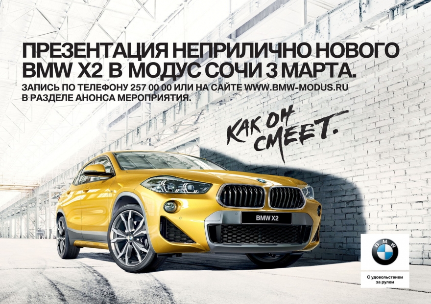 Уже в эту субботу перед Вами откроется совершенно новый BMW X2.