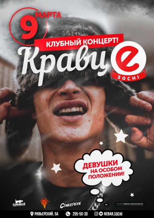 В эту ночь - девушки на особом положении! Праздник продолжается, только в Небар Сочи - большой клубный концерт Кравца!