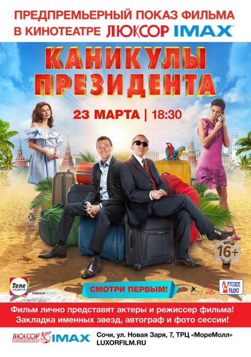 В кинокомплексе Люксор IMAX смотри российский комедийный фильм Ильи Шерстобитова «Каникулы президента» на неделю раньше!
