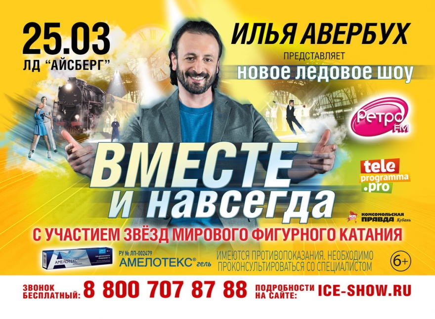 В Сочи состоится премьера шоу Ильи Авербуха "Вместе и навсегда" в ЛД "Айсберг". В программе участвуют Алексей Ягудин, Татьяна Тотьмянина, Максим Маринин, Роман Костомаров, Татьяна Волосожар и Максим Траньков и другие известнейшие фигуристы.