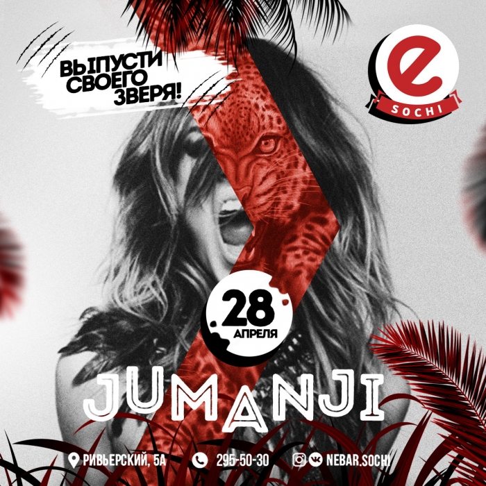 Только на одну ночь, Небар превратится в настоящие джунгли! Ррррр... Кто ты? Хищник или добыча? решать тебе.Впервые в Небаре Body art show .За раскрытие животных инстинктов отвечают лучшие бармены Черноморского побережья, снимает табу на трешотдых МС ПИН а так же бьют в барабаны Dj Пламен и Dj Паша Волков. Фигурки на доске, игра начинается. Самое время выпустить своего внутреннего зверя и окунуться в мир jumanji.