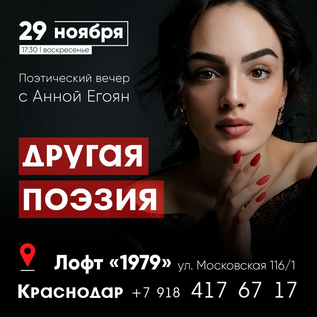 Проект «Другая Поэзия» от «Большие Волшебники» - это про красоту, культуру и любовь друг к другу. Пятым выпуском проекта Event-организаторы создадут уютный красивый творческий вечер с участием прекрасной поэтессы, чтеца Анны Егоян и ведущей вечера душевной Армине Курдоглян.