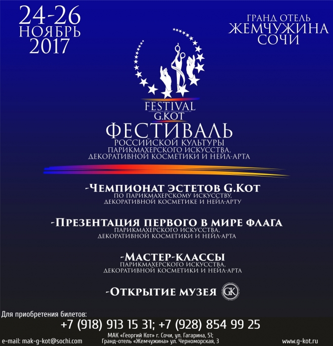 С 24 по 26 ноября 2017 года в городе Сочи Гранд отель «Жемчужина» состоится открытие Фестиваля Российской культуры парикмахерского искусства, декоративной косметики и нейл-арта.