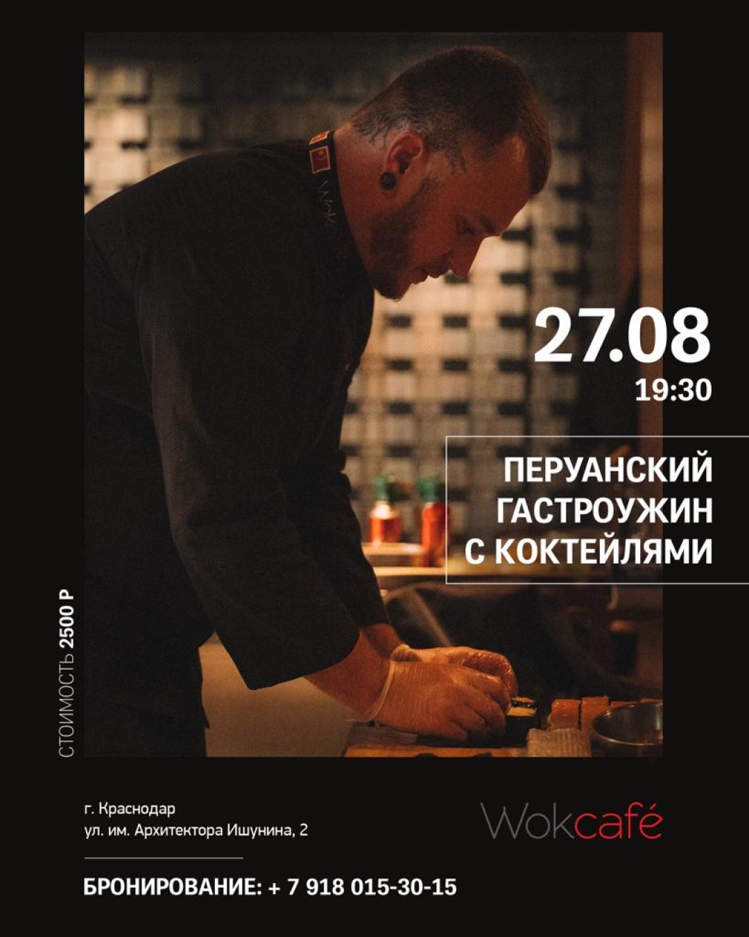 Александр приготовит пять блюд, которые традиционно подают в Перу. Бренд-бармен Кирилл Грушин к каждому из них подберет коктейль.