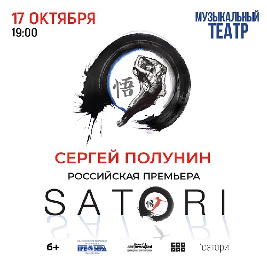 Российская премьера постановки в хореографии Сергея Полунина состоится уже в этом месяце, а 17 октября программа будет показана в Краснодаре на сцене Музыкального театра «Премьера». Над шоу артиста работали режиссер Цирка Дю Солей Габриэль Марсель дель Веккио и композитор Лоренц Дэнжел. Satori – воплощение личного опыта Полунина, благодаря которому он открыл новую любовь к танцу и вновь обрел его смысл в своей жизни.