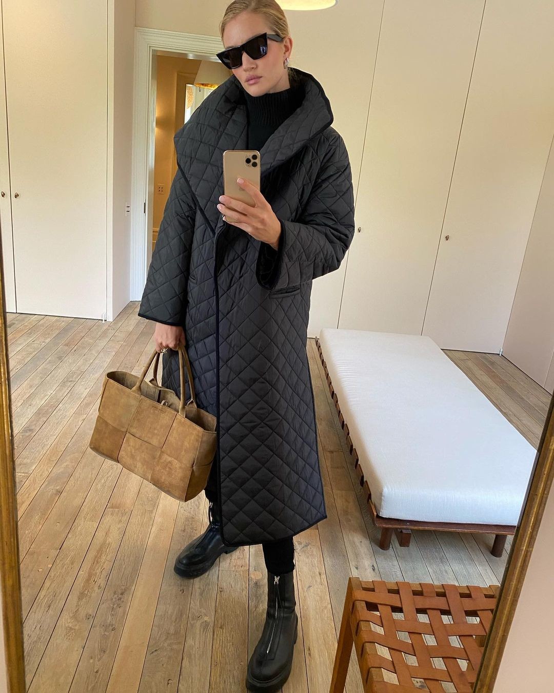 Рози Хантингтон-Уайтли опубликовала у себя в Instargram серию снимков, на которых запечатлен ее осенне-зимний гардероб - стеганое пальто, ботинки-челси, резиновые сапоги, модные сумки Bottega Veneta и многие другие вещи в нейтральной цветовой гамме.