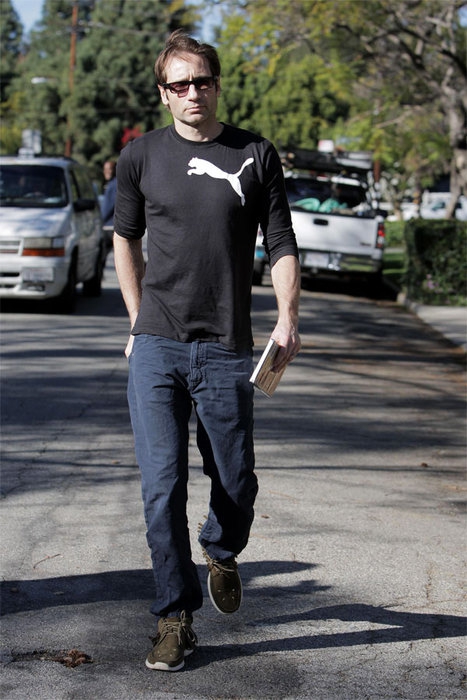 Духовны не является рекламным лицом бренда, тем не менее, чуть ли не в каждой третьей фотографии, заснятой папарацци, актер появляется в футболках с логотипом Puma. Он миксует их с джинсами, чиносами и трениками. Человечность и простота — это то, за что нам так симпатичен и Дэвид Духовны в спортивных майках, и нормкор.