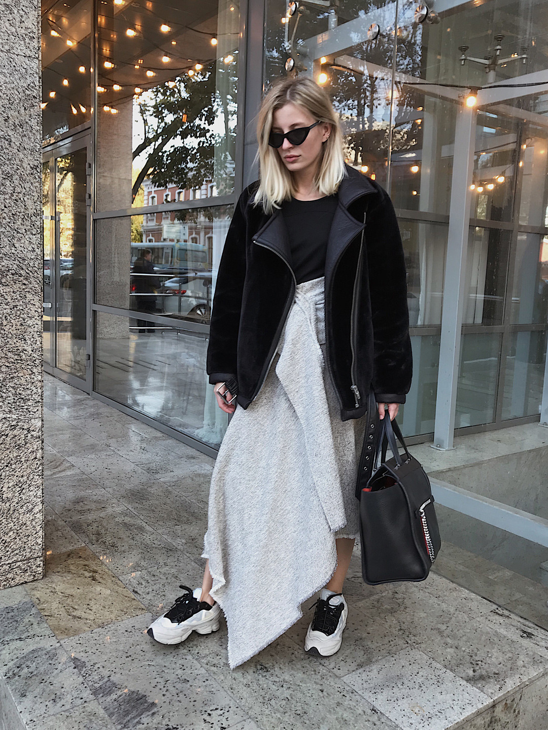 Девушка, пожалуй, с самым концептуальным инста-аккаунтом в городе больше всего ценит свободу, индивидуальность и комфорт в своих образах. С радостью поддерживает стильные локальные бренды, которые помогают разнообразить луки местных модников. А при выборе вещей для собственного гардероба не ставит во главу угла бирку на их внутренней стороне, для нее куда важнее то, как выглядит сама вещь. Но список брендов «с ноткой искусства», за которыми приятно наблюдать, у нее все же есть: Celine, Balenciaga, Y/Project, Cult Gaia, Ann Demeulemeester и Uma Wang. Она может миксовать абсолютно все вещи в своем гардеробе, даже любимые кроссовки Adidas в коллаборации с Raf Simons, секрет прост —подходите к их покупкам осознанно.