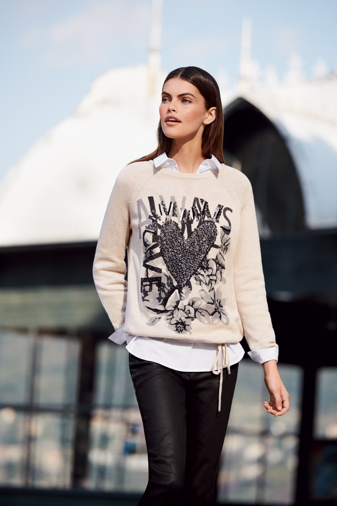 Коллекцию осень-зима 2019 бренд анонсировал девизом «Декоративные принты по всей поверхности!» А его дизайнеры и правда как следует поиграли с визуалом: к одежде насыщенных оттенков (бордо, золотой, зеленый) и в пастельных тонах (розовый, зеленовато-голубой) добавили графический дизайн, отделку стразами, надписи, вырезы на плечах, шифоновые вставки и тканевые пояса. Изменения коснулись и фасонов: в коллекции появились спортивные детали (кулиски и завязки), шарфы с надписями, блейзеры с декоративными лентами на рукавах и пальто из жаккарда с люрексом.