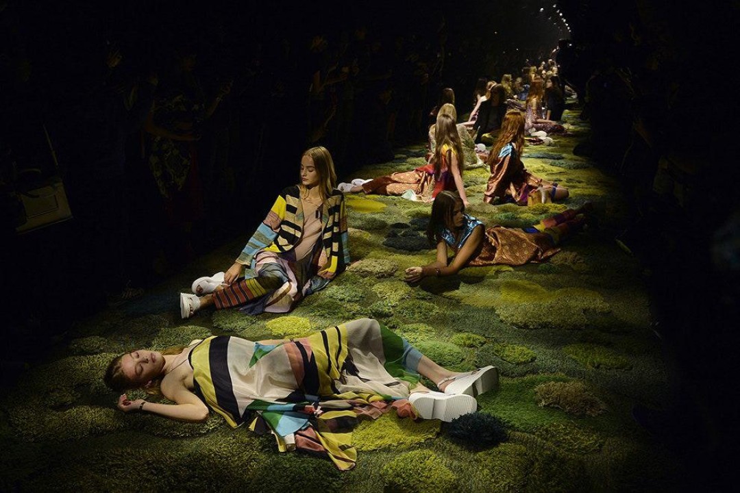 Dries Van Noten весна-лето 2015. Вместо традиционного финального выхода модели прилегли прямо на подиуме.