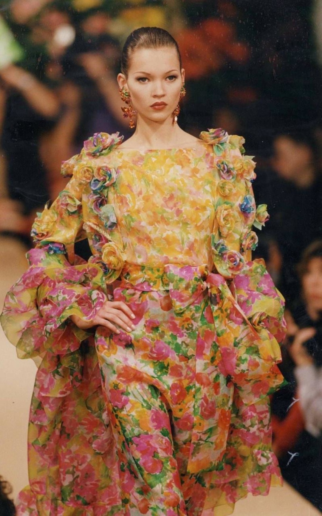 Модель Кейт Мосс украсила подиум Yves Saint Laurent Haute Couture в романтическом букете цветочных принтов.
