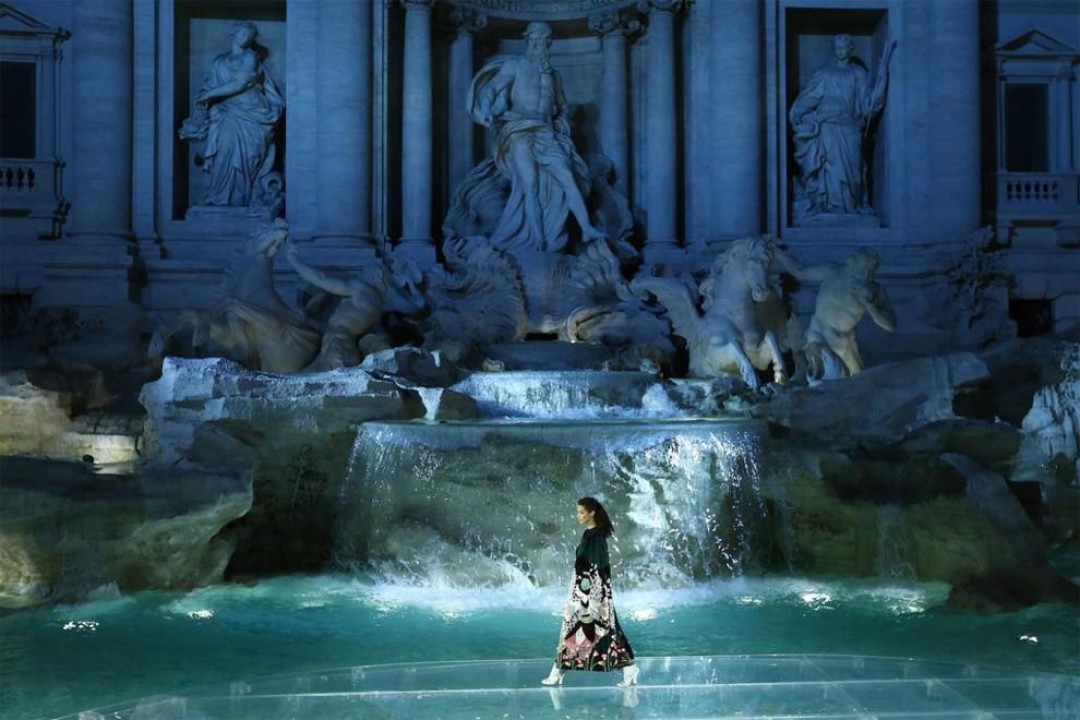 Для шоу 90-летия Fendi «Легенды и сказки» Карл Лагерфельд черпал вдохновение из иллюстраций датского художника Кея Нильсена в детской книге 1914 года «К востоку от солнца и к западу от луны». Фантазия действительно стала реальностью: то, как модели ходили по воде (по прозрачному подиуму, установленному над римским фонтаном Треви) врядли когда-то получится забыть.