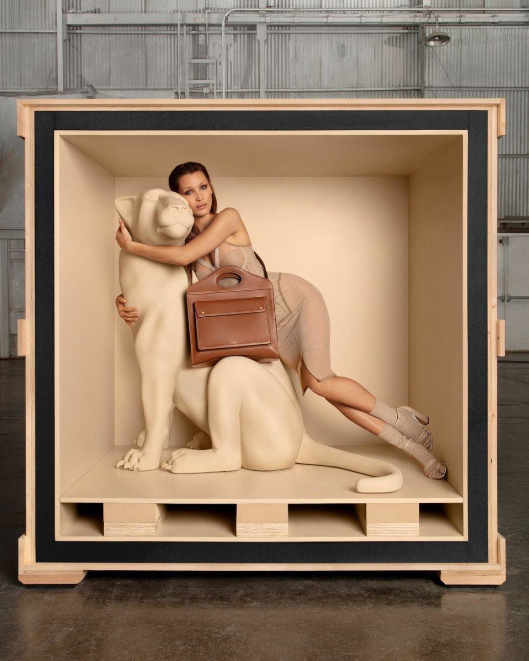 Это первая рекламная кампания сумок в истории бренда Burberry. Фотоистория с Беллой Ходил в главной роли посвящена обновленной модели Pocket.