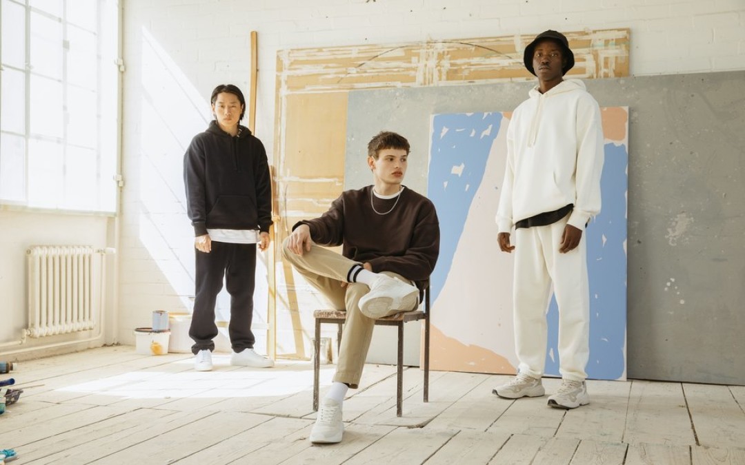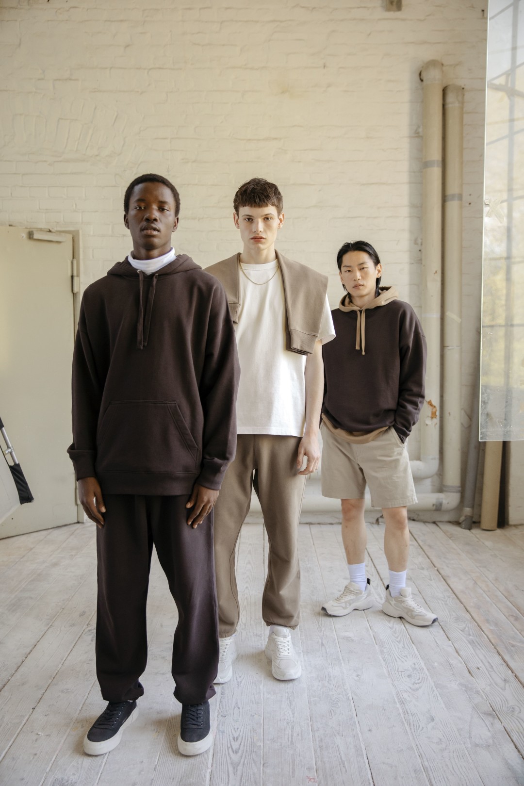 В коллекции представлены оверсайз-силуэты, толстовки с широким воротником и джогеры на резинке. Цвета — белый, бежевый, черный и коричневый.
