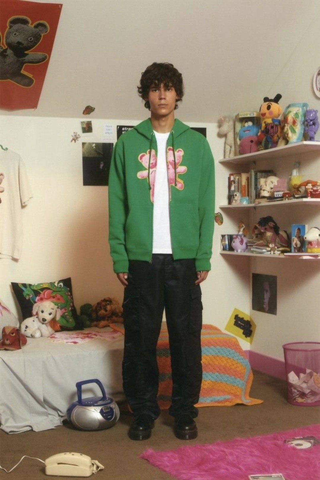 Новая коллекция Марка Джейкобса — это "врата во вселенную подростковых грез, нации отчуждения, конфетных рейверов, психоделических фантазий и антиутопии. Фантастический мир, соединяющий субкультуры и прославляющий многогранных персонажей, которые и составляют сообщество Марка Джейкобса последние 30 лет", комментируют представители бренда Marc Jacobs.