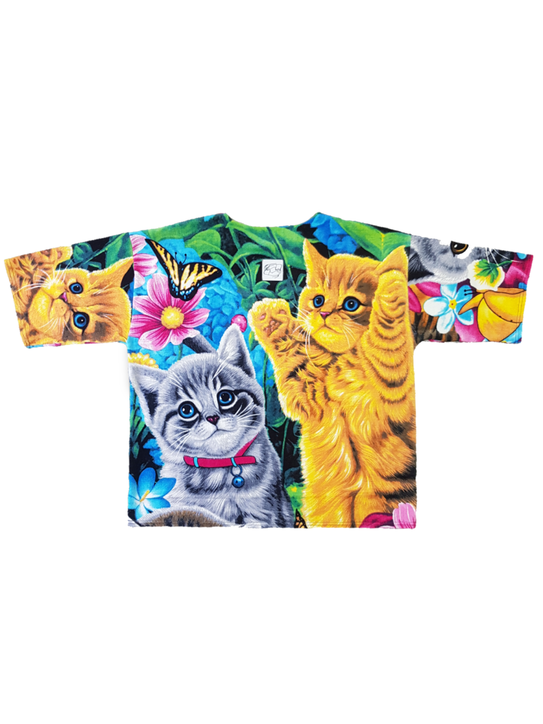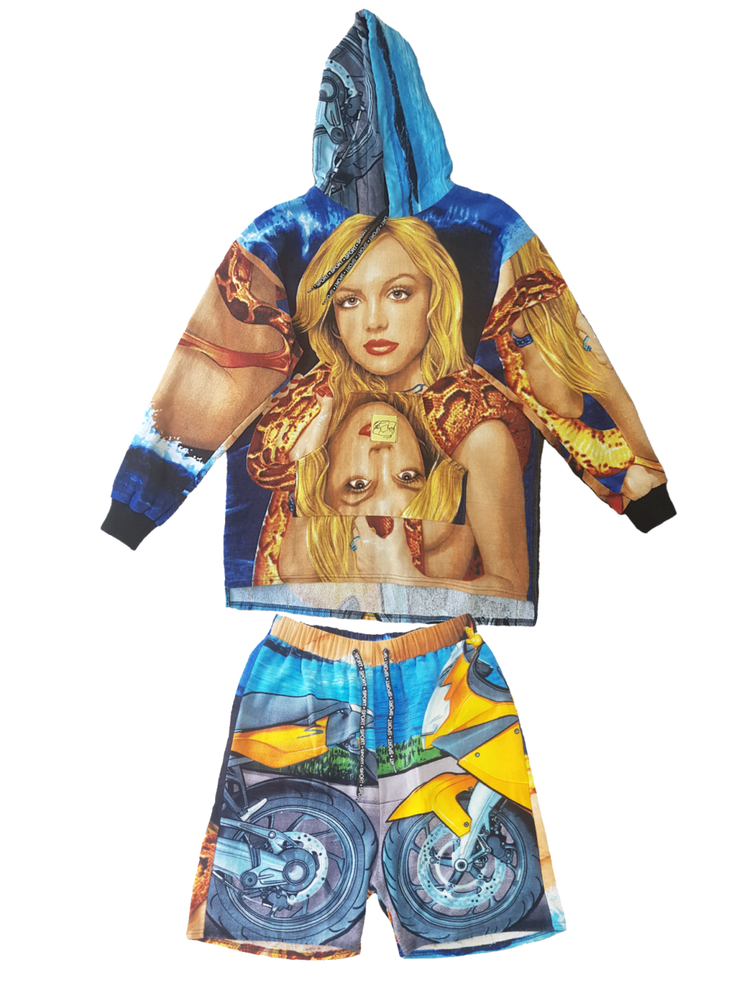 Из хлопковых махровых полотенец, купленных на Вишняковском рынке и заказанных у проверенного поставщика в Китае, основатель бренда «САМШИТ» во время локдауна самостоятельно собрал капсульную коллекцию. Получились мягкие костюмы, шорты, футболки и худи с яркими и вечно актуальными принтами: котиками, большими дикими кошками и (внезапно!) Бритни Спирс.