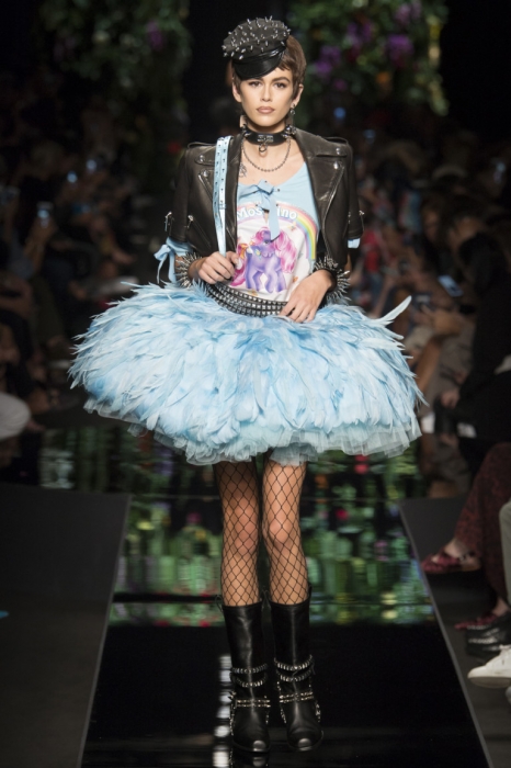 Новая весенне-летняя коллекция Moschino, показанная вчера вечером в Милане, имела бы оглушительный успех в детском саду. В следующем сезоне все поддадутся инфантилизму и будут носить розовые юбки-пачки — точь-в-точь как на новогодних утренниках, укороченные косухи выше груди, сумки-ланчбоксы с единорогами и топы с My Little Pony. Последние стали результатом очередной треш-коллаборации Джереми Скотта после McDonald’s, Barbie, Lonely Tunes и дорожно-строительной фирмы
