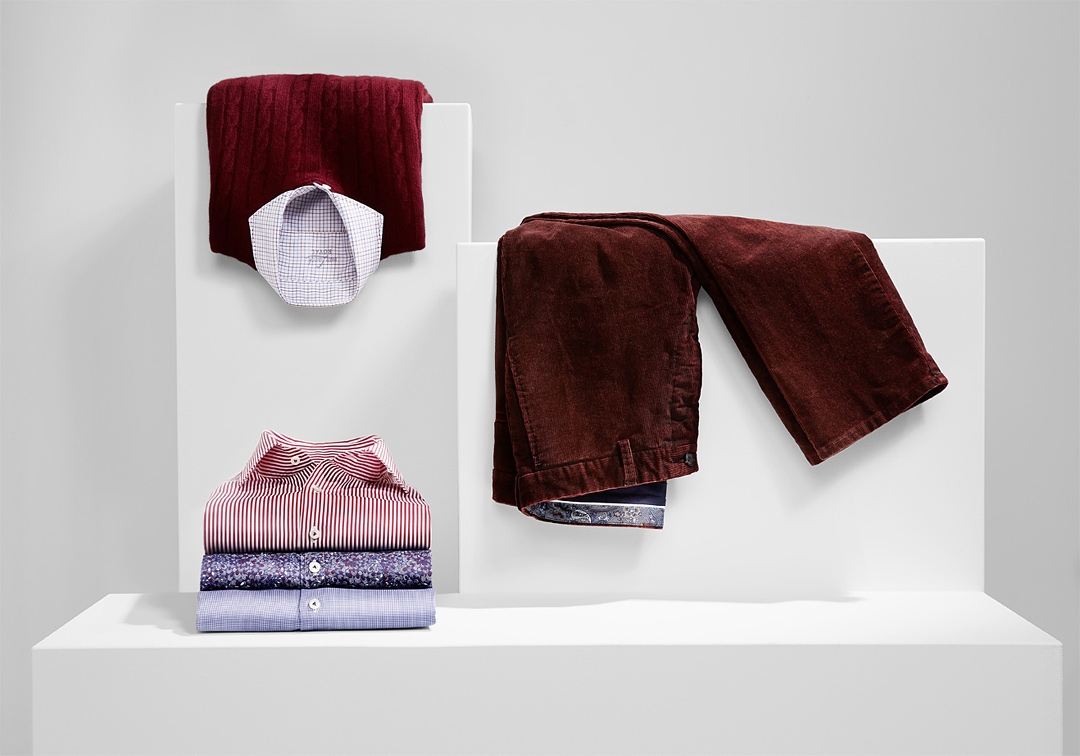 С их легкой руки деликатные итальянские ткани Loro Piana превратились в мягкие свитеры из кашемира, пиджаки и костюмы, и пальто в актуальных насыщенных оттенках синего, серого и бордо. Разбавить образ они предлагают аксессуарами: новыми ремнями, галстуками, шарфами, шапками или платками-паше. Не обошлось и без визитной карточки бренда, сорочек и рубашек.