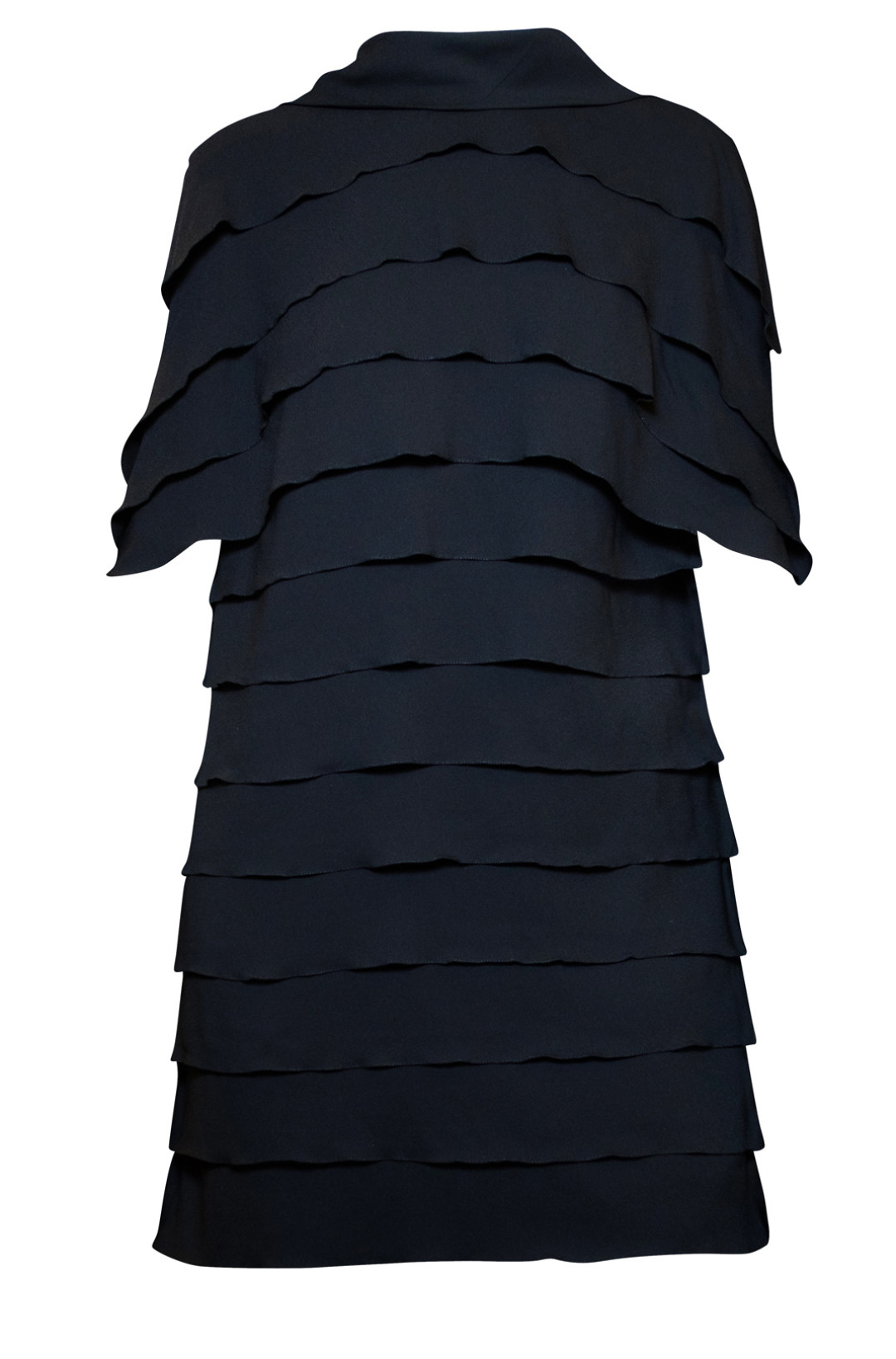 4. На смену лаконично-пижамной стилистической компании приходит одно платье, которое буквально создано для того, чтобы быть в центре внимания, — оно «откликается» буквально на каждый шаг, создавая выгодный объем из взлетающих вверх деталей, расположенных по всему его периметру.