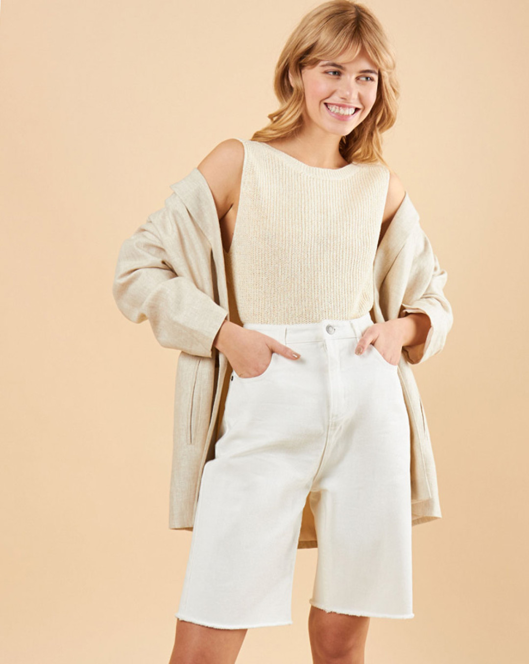 Джинсовые шорты миди пришли на смену велосипедкам и это хорошо, потому что, в отличие от велосипедок, они подойдут даже офисному работнику в сочетании с пиджаком или рубашкой и с босоножками на каблуке. Что говорить о повседневных образах?
