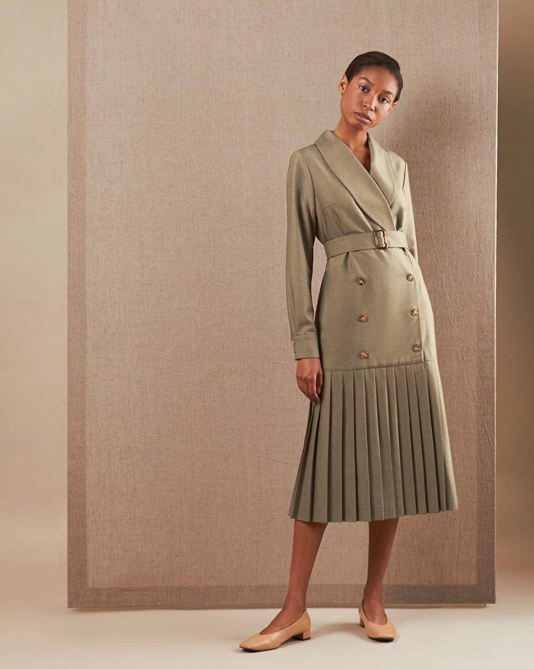 Тенденция на небанальную одежду в военном стиле не может не радовать. Смотрите сами, в одном платье от 12storeez встретились сразу две вещи — удлиненный двубортный жакет и юбка плиссе. Таким образом, основательницы марки Ирина и Марина Голомаздины нашли выход для тех, кто устал от одного и другого по отдельности.