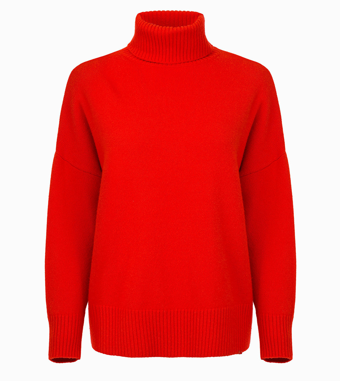 Свитер из шерсти свободного кроя с высоким горлом — незаменимая вещь в гардеробе при приближающейся зиме. Активно носим яркий свитер Elisabetta Franchi не только в сочетании с другими фактурами (шифоном, кожей и денимом), но и вторым слоем трикотажа. Во-первых, это практично, а во-вторых, очень модно.