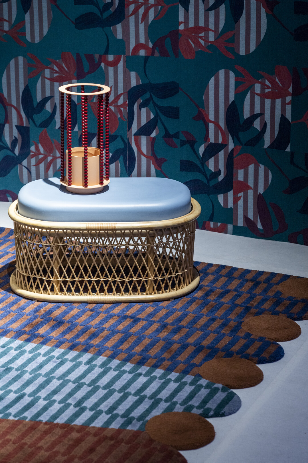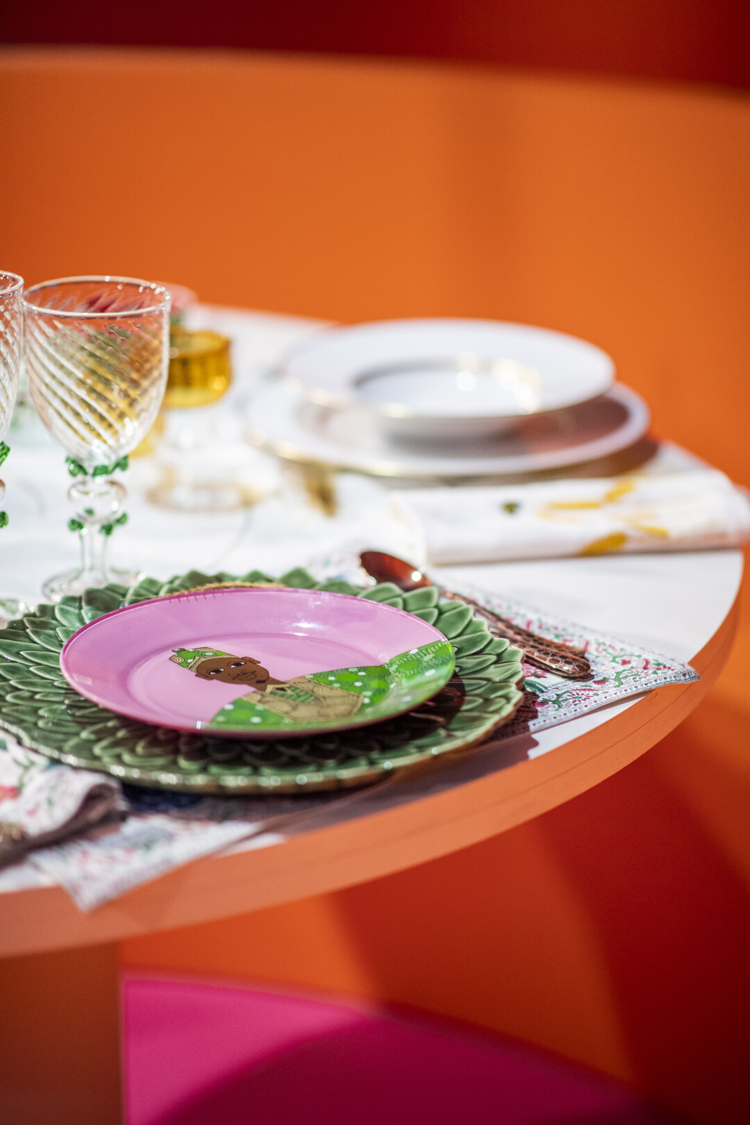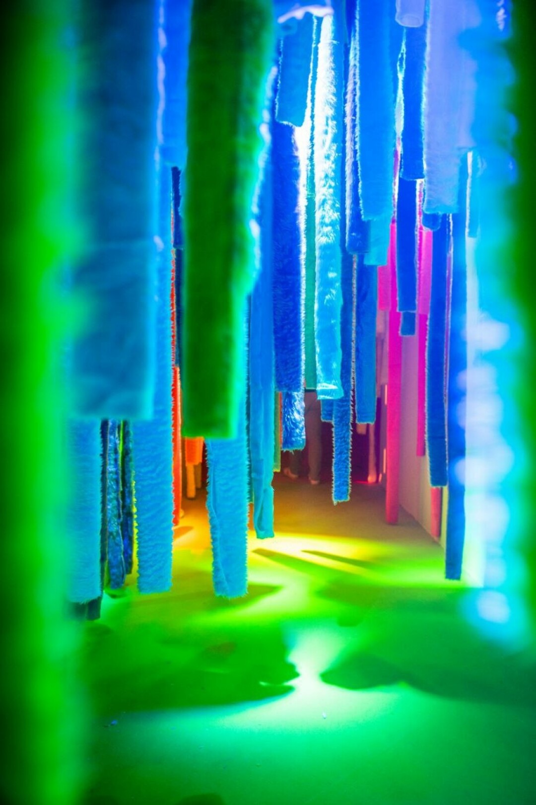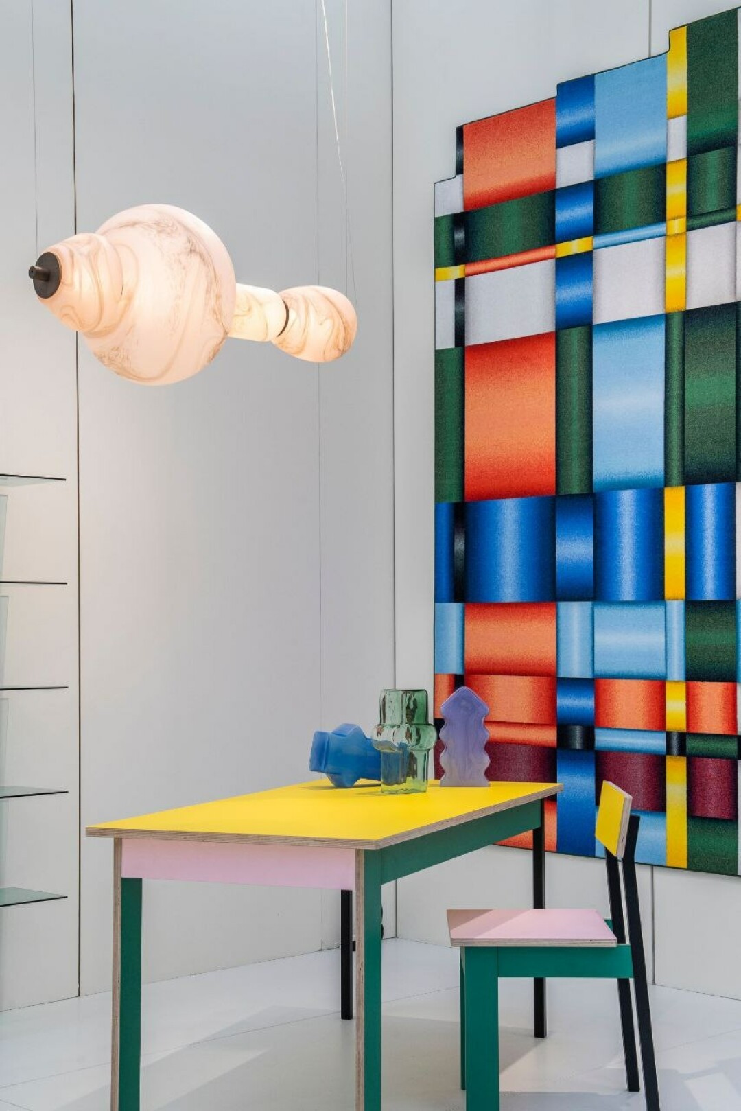 Цветная «пыль» разлилась радужным цветом повсюду. В интерьере большое количество стекла, включая посуду. Наложение цвета и мерцание вселенной — маст-хэв в модном пространстве. Ковры в форме кляксы должны отражаться в стекле, создавая многоярусный дизайнерский эффект. Саркастичный текстиль, картины и керамика сопровождают современный интерьер и подчеркивают игривый характер хозяина.