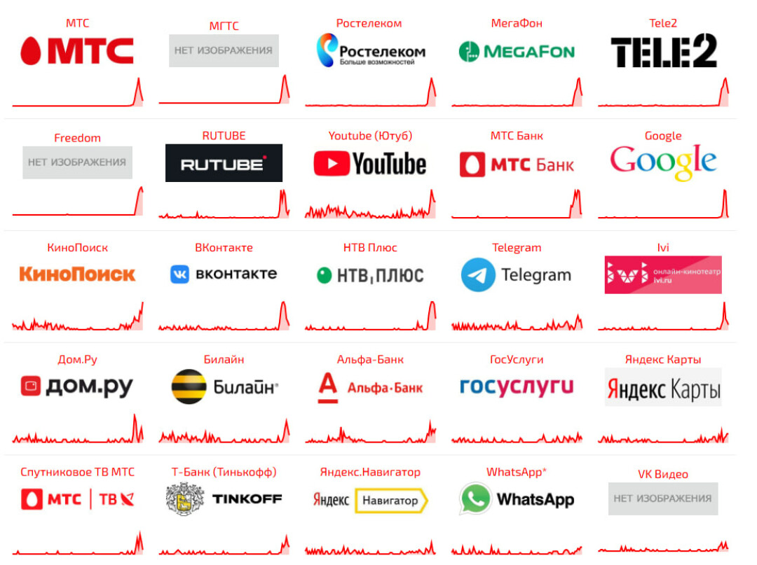 Как следует из данных сервиса «Сбой.рф» и downdetector.su, на перебои жалуются пользователи приложений «большой четвёрки операторов», самое большое число жалоб приходится на МТС, свыше 20 тыс. обращений. Затронул сбой «Мегафон», T2, «Билайн», есть неполадки у Ростелекома и Дом.ру.