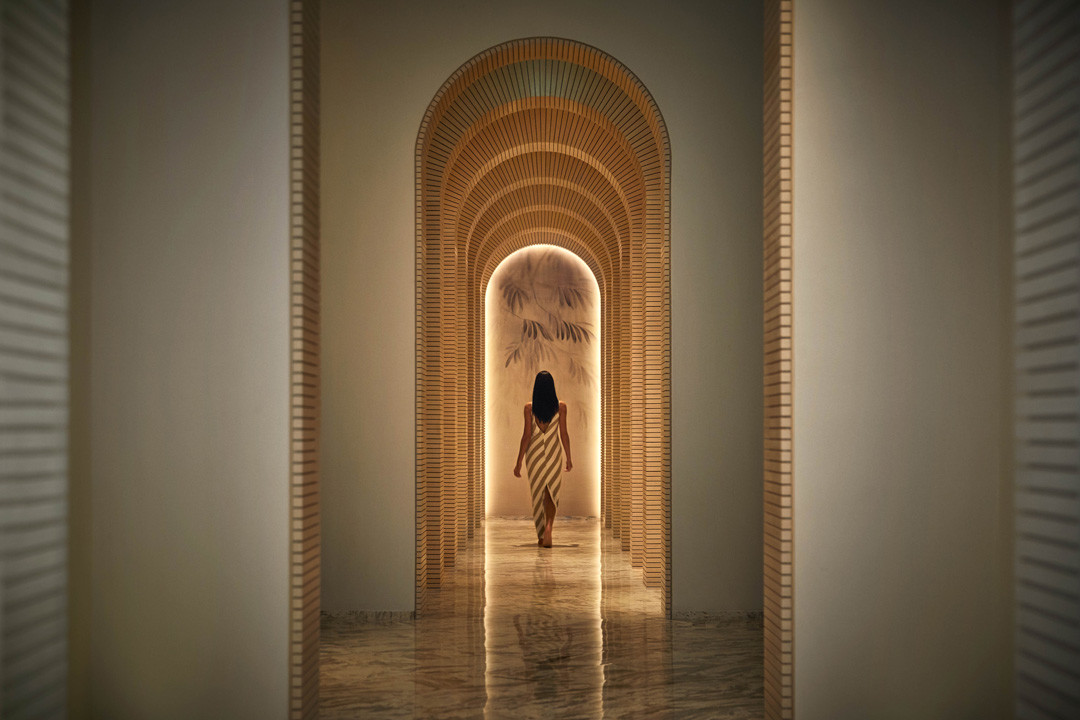 Ответственный за дизайн отеля — архитектор Набиль Акики — в работе вдохновлялся античными греческими амфитеатрами. В итоге у него вышла их современная версия с панорамными окнами от пола до потолка, просторными комнатами и входной зоной — высоким стеклянным пятнадцатиметровым кубом, с которого открывается вид на шестидесятиметровый бассейн, шезлонги и открытые бары отеля.