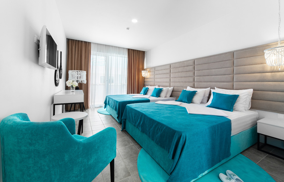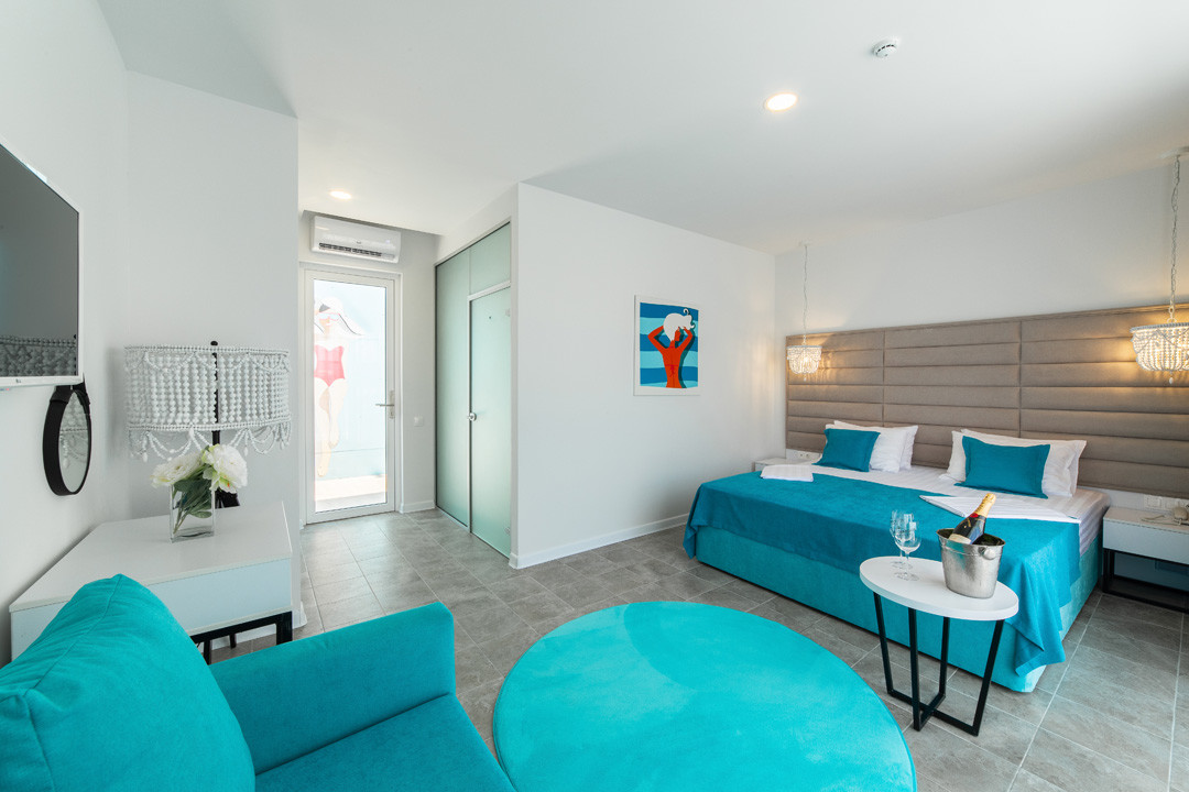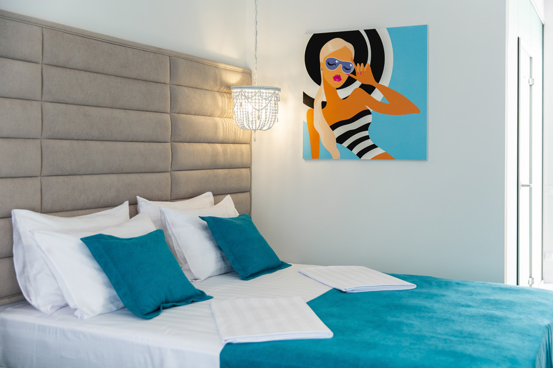 В отеле тридцать шесть номеров в категориях deluxe, семейный deluxe и luxe — первый, оснащен двуспальными кроватями king size, диваном, всеми необходимыми аксессуарами, телевизором, просторным гардеробом и холодильником. Вторая категория двухместных номеров подойдет для семьи или большой компании, помимо всех удобств, они оснащены двумя двуспальными кроватями queen size. В единственном двухкомнатном номере luxe есть гостевая зона с диваном, большая двуспальная кровать и дополнительная детская комната с двумя раздельными односпальными кроватями. Всю мебель делали вручную, а роспись стен в отеле и картины в номерах выполнен по мотивам популярного французского иллюстратора Малики Фавр.