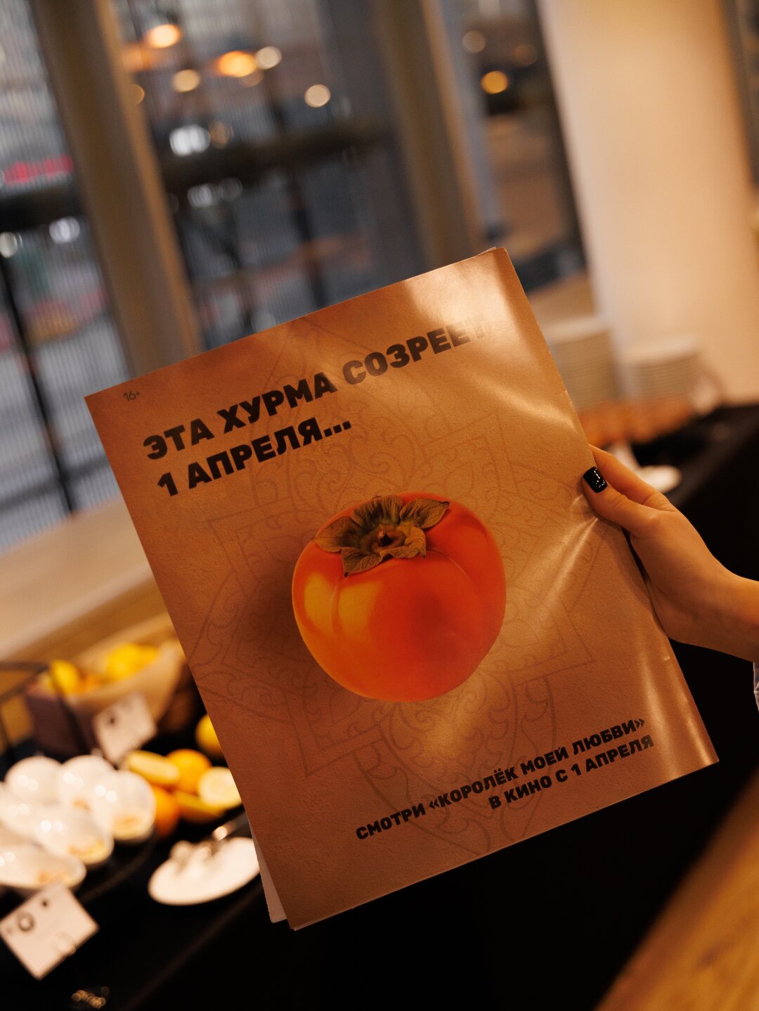 Вечер прошел в яркой и насыщенной атмосфере, отсылающей к эстетике Болливуда: гостей встречала оранжевая дорожка вместо традиционной красной — в цветах проекта и его настроения. Фотозоны погружали в мир города Хурмада, где происходит действие фильма, а попкорн со вкусом карри и хурмы, отсылающий к ключевым мотивам картины, давал возможность попробовать эту атмосферу на вкус.