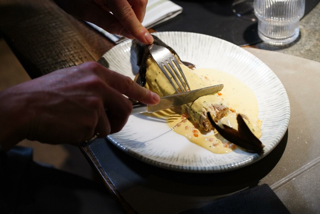 Ужин артист провел в камерной атмосфере ресторана «Чешуя». Там шеф-повар Роман Чемеренко устроил для звезды настоящий гастро-перформанс. Особенно Митя отметил Пьяную стерлядь с соусом Шампань и шафраном. А поднявшись в зал на втором этаже, певец остался в восторге от дизайна потолка, который напоминает волны.