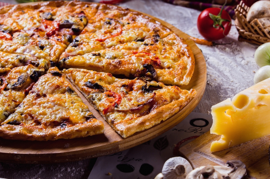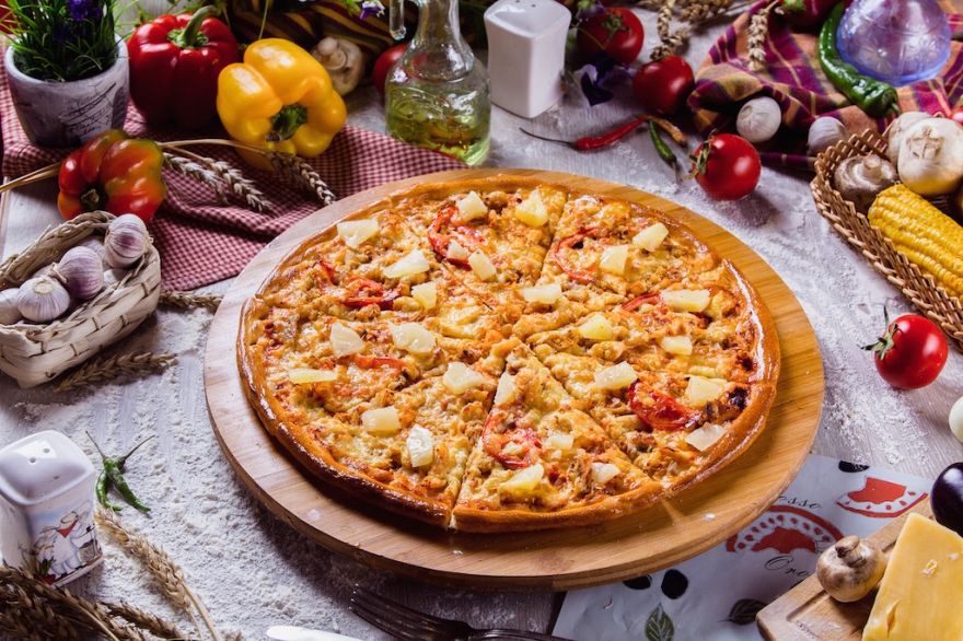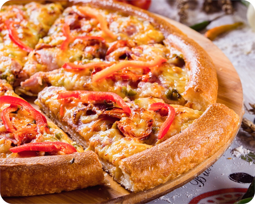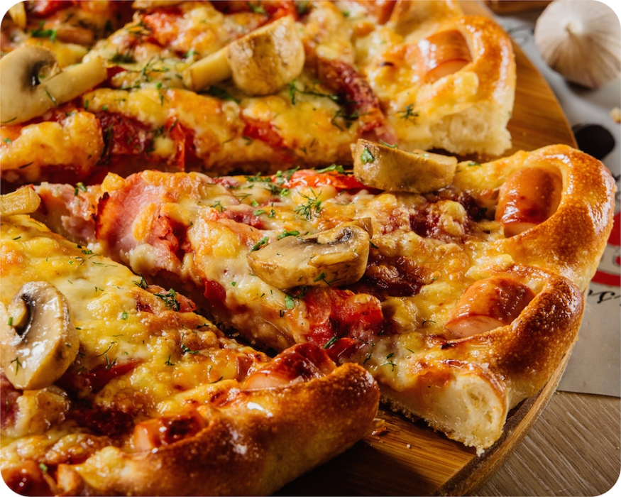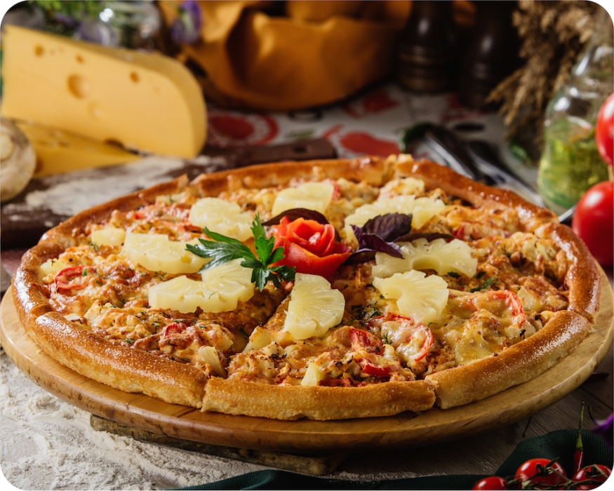 Кроме этого есть предложения с огурцами, болгарским перцем, ананасами, сырокопченым окороком, пепперони, мясным фаршем, говядиной, свининой, маслинами, морепродуктами и тремя видами сыра для вегетарианцев.