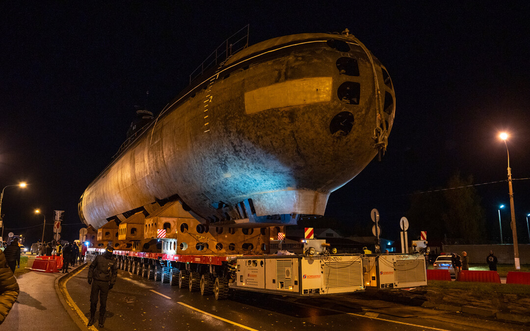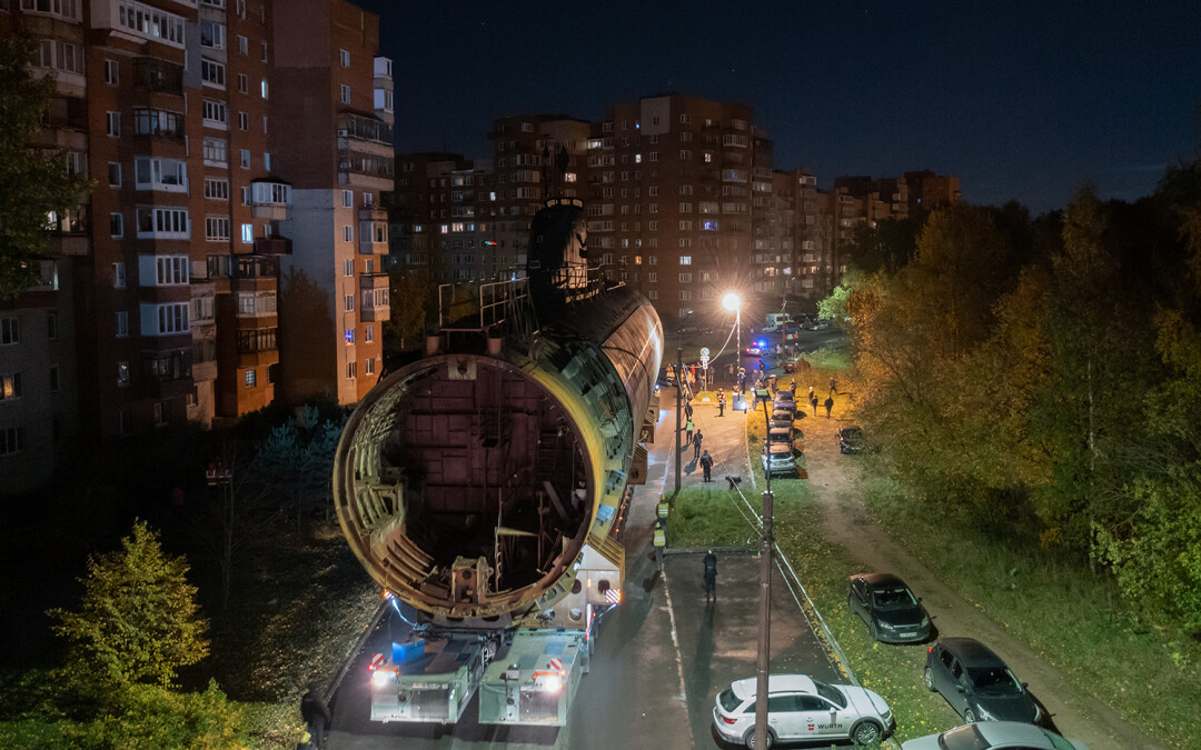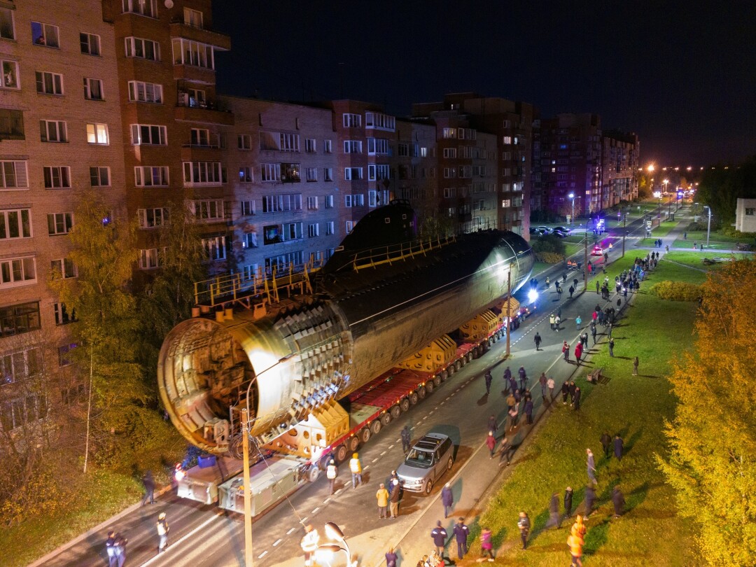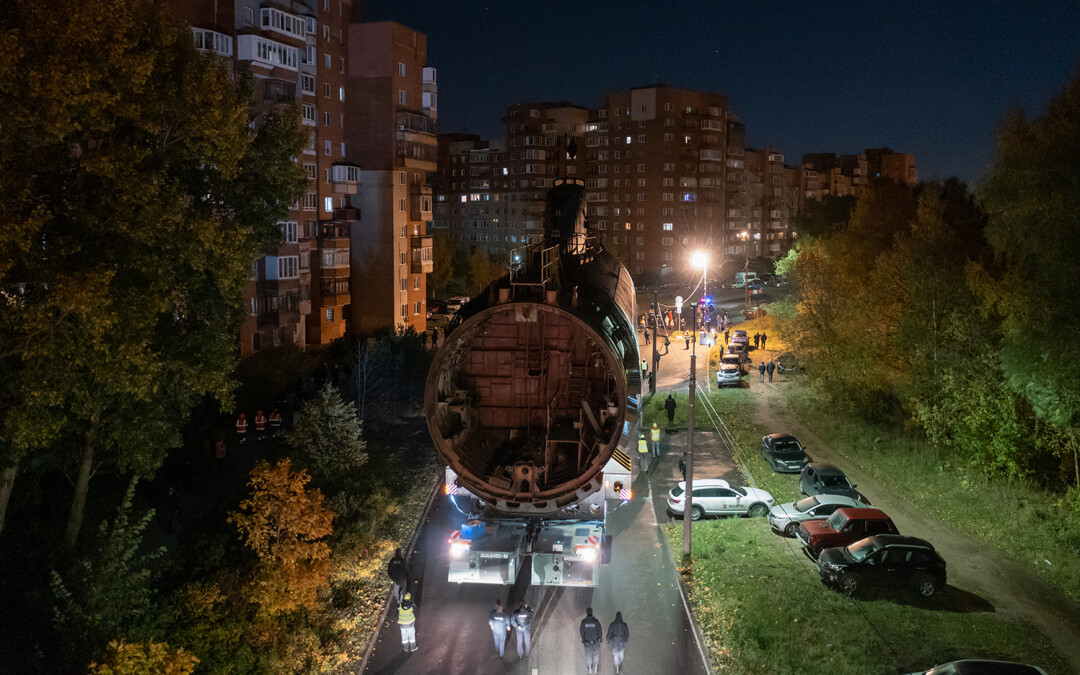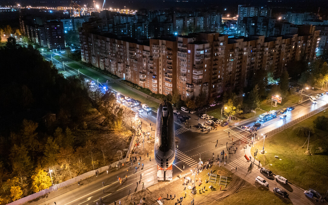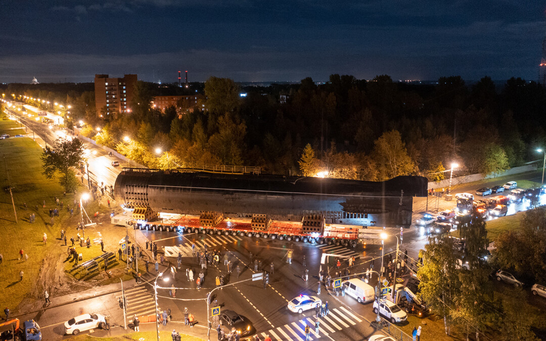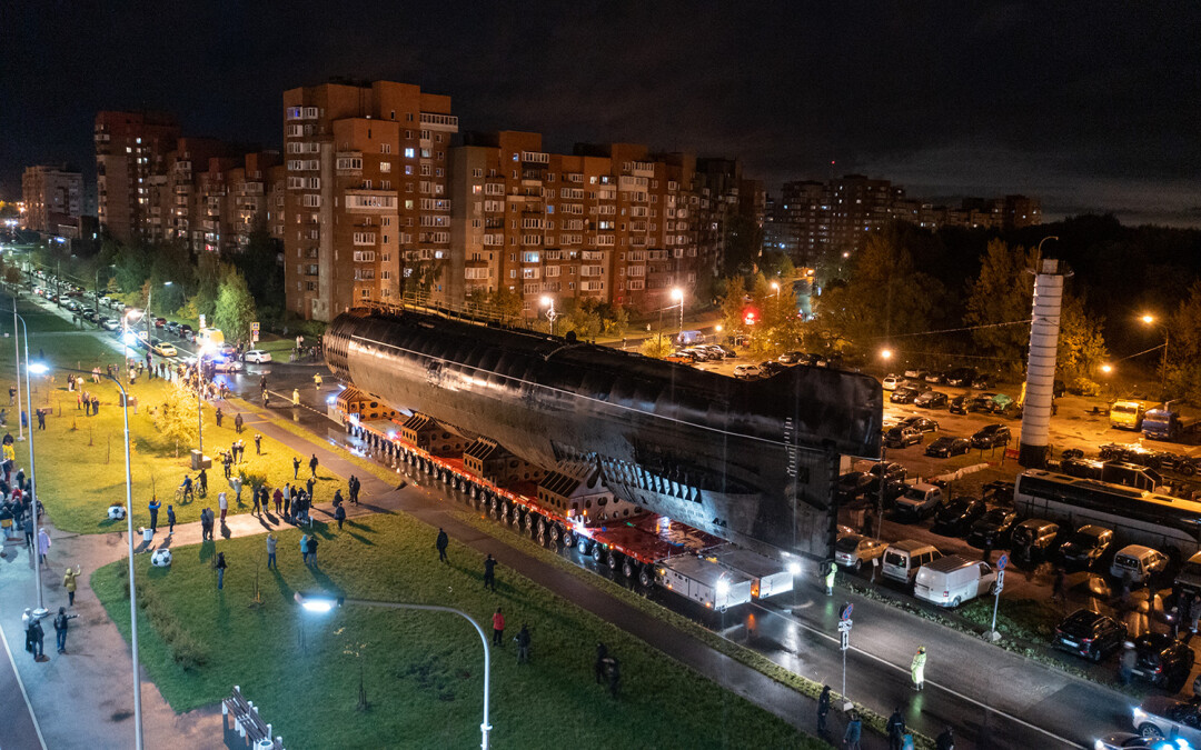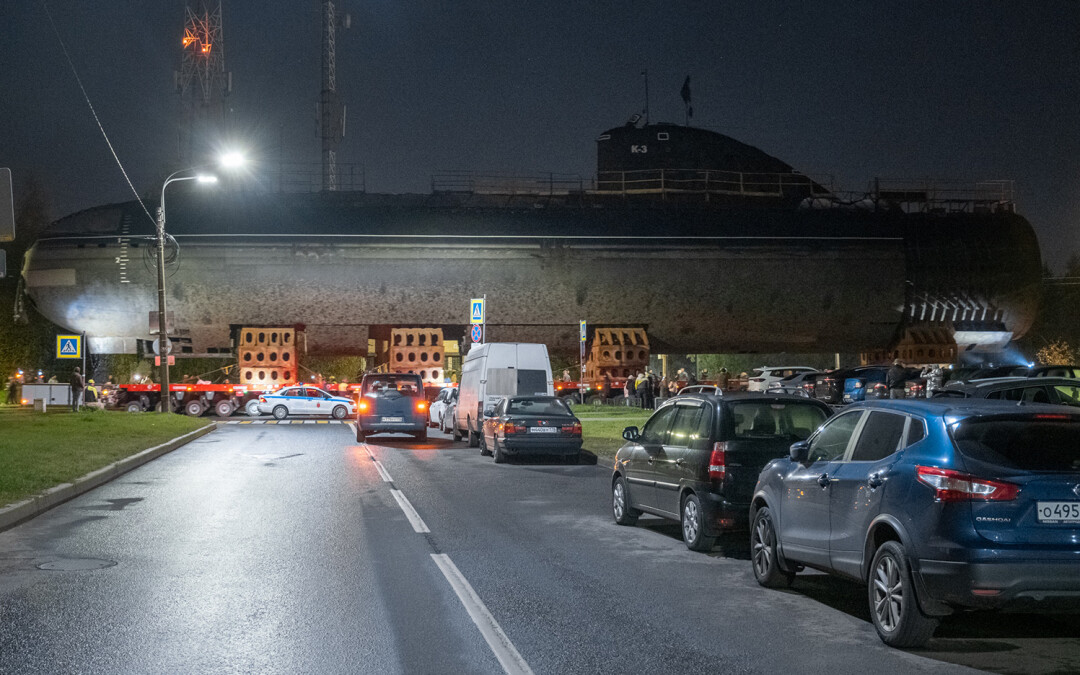 В ночь с 11 на 12 октября в Кронштадте перевозили носовую часть первой советской атомной подводной лодки К-3 «Ленинский комсомол» в новый Музей военно-морской славы — и это зрелище достойно книги рекордов Гиннесса.