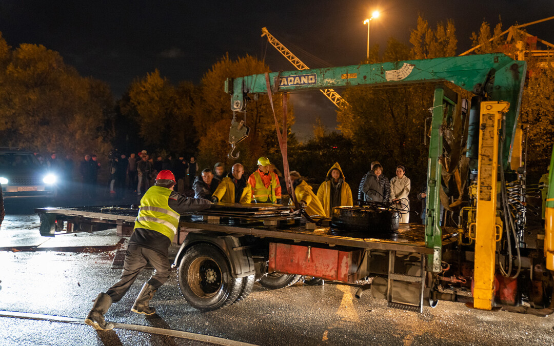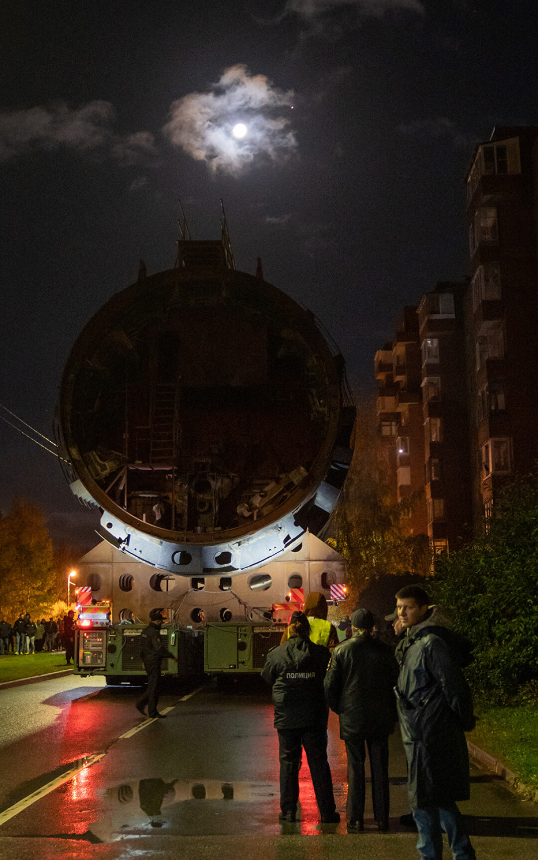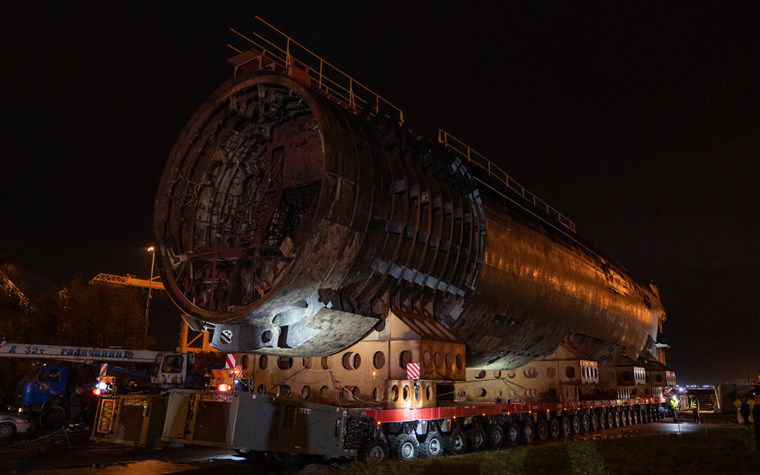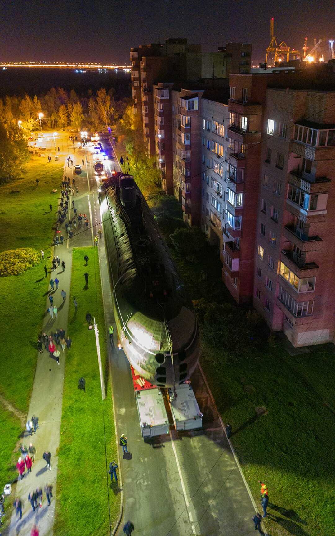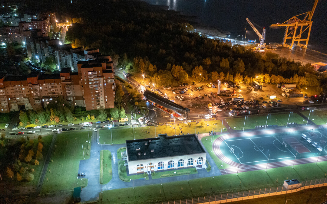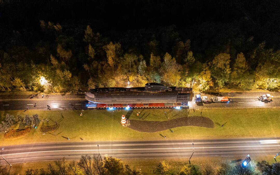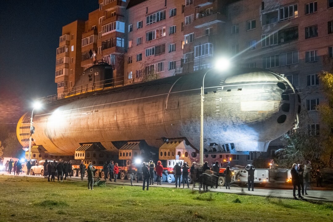 В ночь с 11 на 12 октября в Кронштадте перевозили носовую часть первой советской атомной подводной лодки К-3 «Ленинский комсомол» в новый Музей военно-морской славы — и это зрелище достойно книги рекордов Гиннесса.