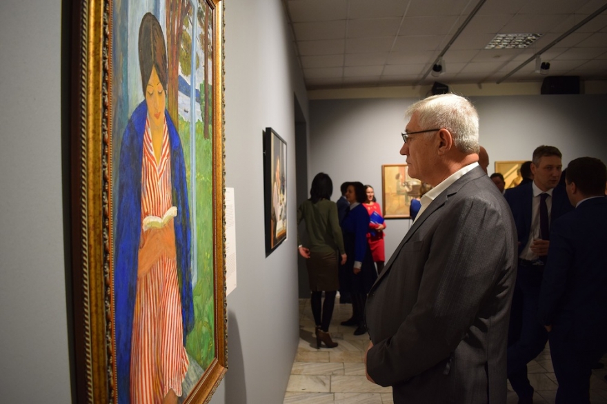 Выставка «Окна в Россию. Шедевры семи поколений» открылась в художественном музее имени В.И. Сурикова. В торжественной церемонии приняли участие генеральный директор компании «Ингосстрах» Михаил Волков, представители администрации Красноярского края, московские и сибирские искусствоведы.