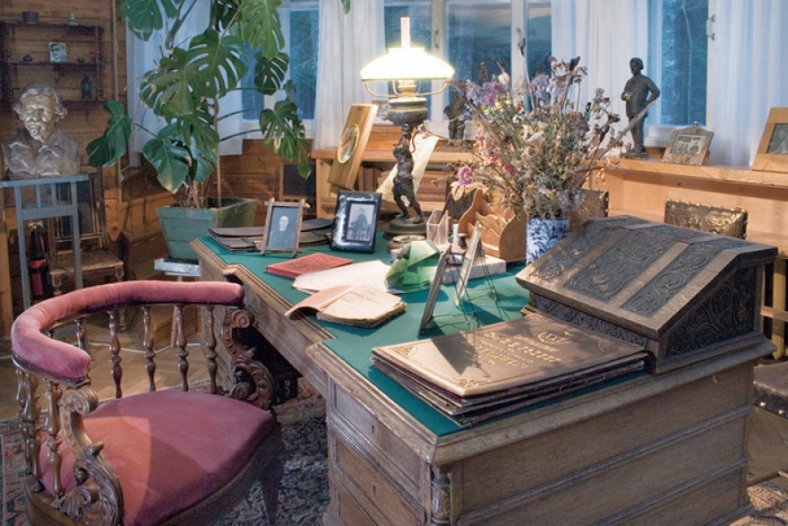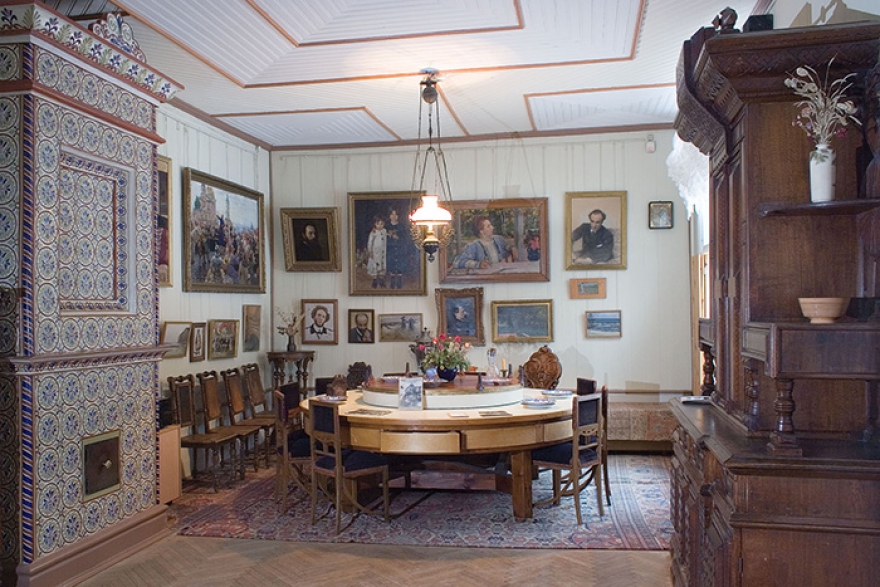 Музей-усадьба Репина «Пенаты» Усадьба в поселке Куоккала была куплена Репиным для второй жены в 1899 году и в последующие годы обустроена по планам самого художника. Здесь он прожил последние тридцать лет и был похоронен. Напоминающее терем двухэтажное сооружение постепенно обрастало все новыми пристройками со множеством больших окон и веранд, пирамидальными световыми фонарями, дающими естественное освещение. В летней и зимней мастерских живописцу позировали Шаляпин, Горький, Короленко, Бехтерев, Чуковский. Сгоревшая во время войны усадьба была построена заново в 1962 году. |