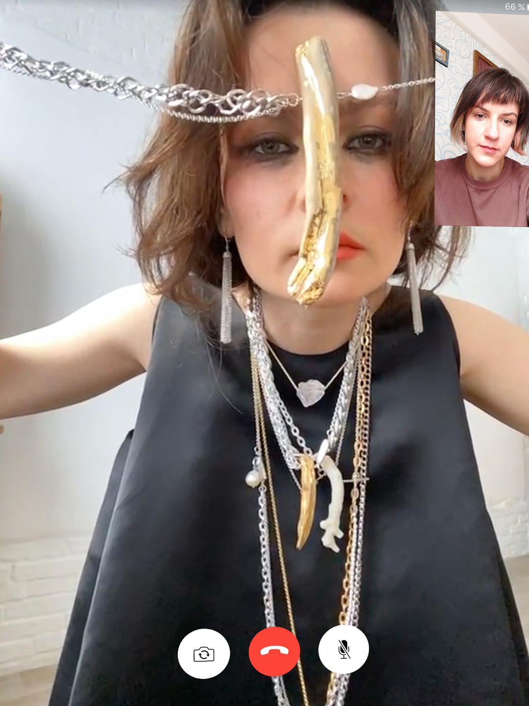 «Мы изучаем возможности, которые могут рождаться в ограничениях. Мы исследуем новые формы, отдавая себе отчёт в том, что мир быстро меняется и не стоит держаться за старое. Это и сам способ коммуникации, который всегда, в принципе, был доступен, но не использовался таким образом. Это другой темп, зависящий от качества связи и самого чувствования расстояния в 3500 километров, когда ты интуитивно говоришь громче, и пытаешься артикулировать чётче. Это оптика наших гаджетов, имеющая свойственную картинку, и последующая обработка фото или отказ от неё как характерная особенность быстрой передачи информации. Это и применение или отказ от цифровых масок, призванных заменить традиционный макияж и несущие своё сообщение, которое раньше нёс макияж и причёска» – так трактует смысл проекта Анна Полякова.