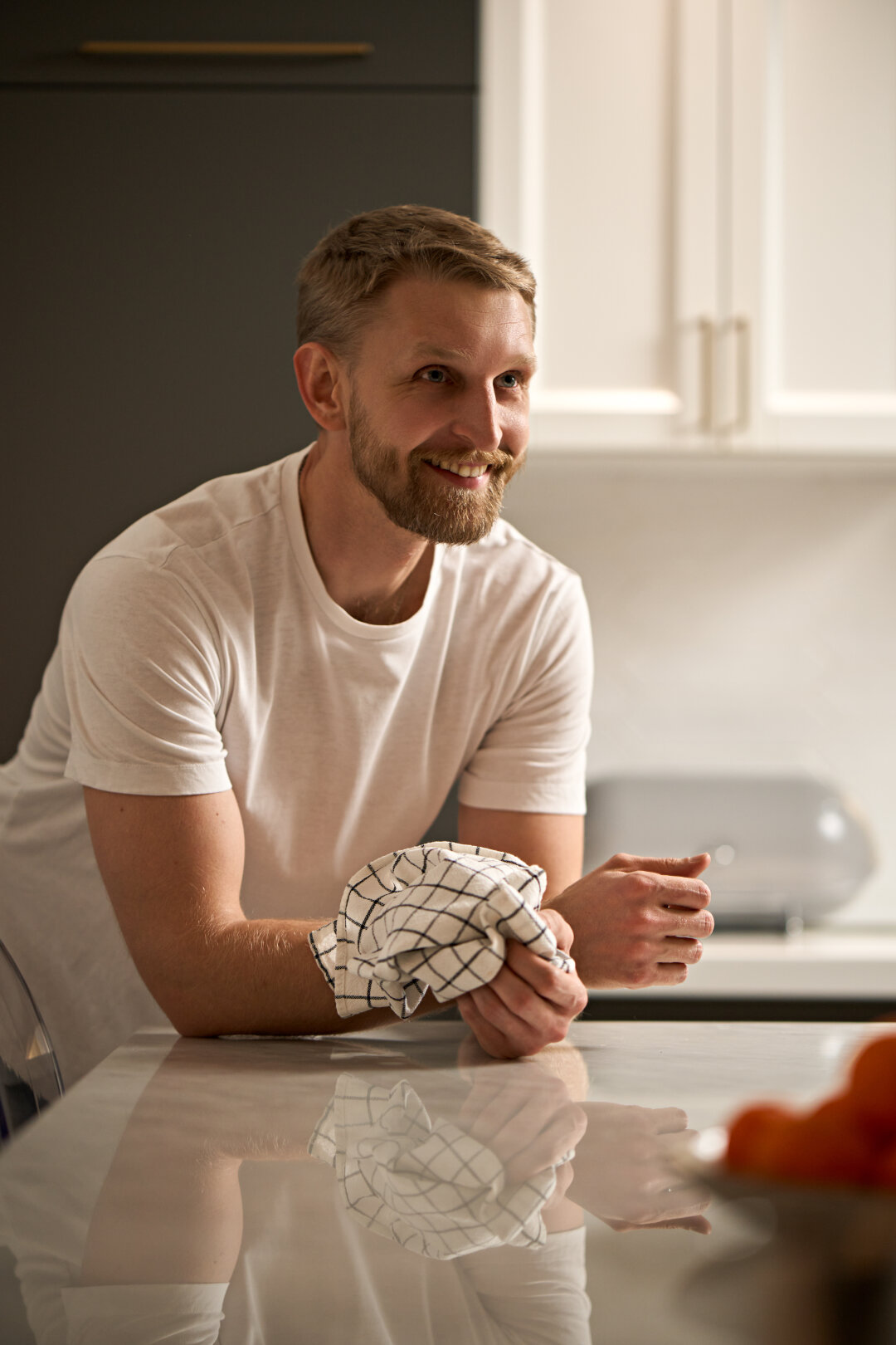 Мы делаем так, чтобы интерьер работал даже без декора, ведь до него у клиентов часто не доходят руки. Раньше я называл свои интерьеры шкатулкой с пуговицами – все детали с первого раза не разглядишь. Особое внимание – свету. Правильное освещение и его температура создают атмосферу и могут исправить многие огрехи. Остальные нюансы вытекают из контекста. Например: если пол из керамогранита уложен «ёлочкой», идеальное совпадение рисунка в дверных проёмах может быть очень трудозатратным. Мы добавляем акцентный порог – это небольшая деталь, которая позволяет разорвать рисунок, и никто не заметит неидеального совпадения. Это и есть та самая продуманная мелочь.