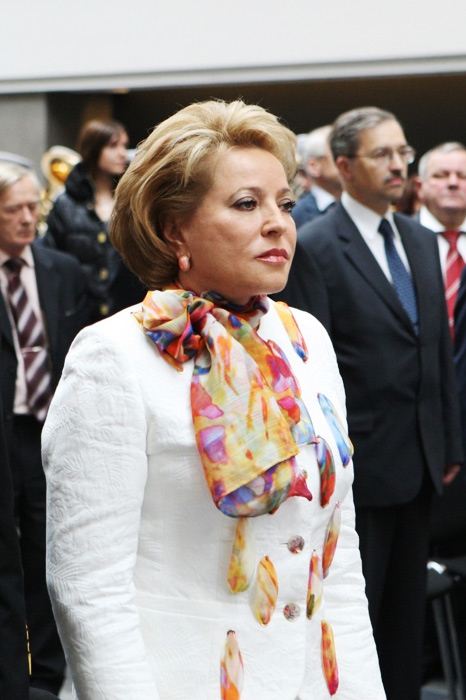 В Петербурге Валентину Матвиенко называют «женщиной-праздником». А к празднику на Руси прилагаются цветные платки. В шейных аксессуарах Матвиенко не трудно различить Hermes. В укор другим чиновницам Кремля, председатель Совета Федерации следует деловому этикету и не надевает колье из драгоценностей. Ситуацию спасают разве что жемчужные серьги-капельки и золотые кольца.