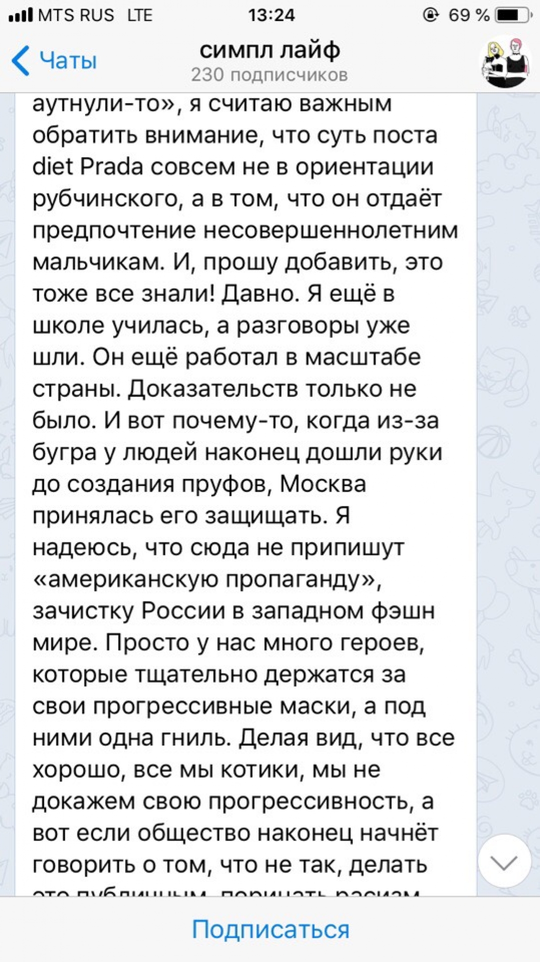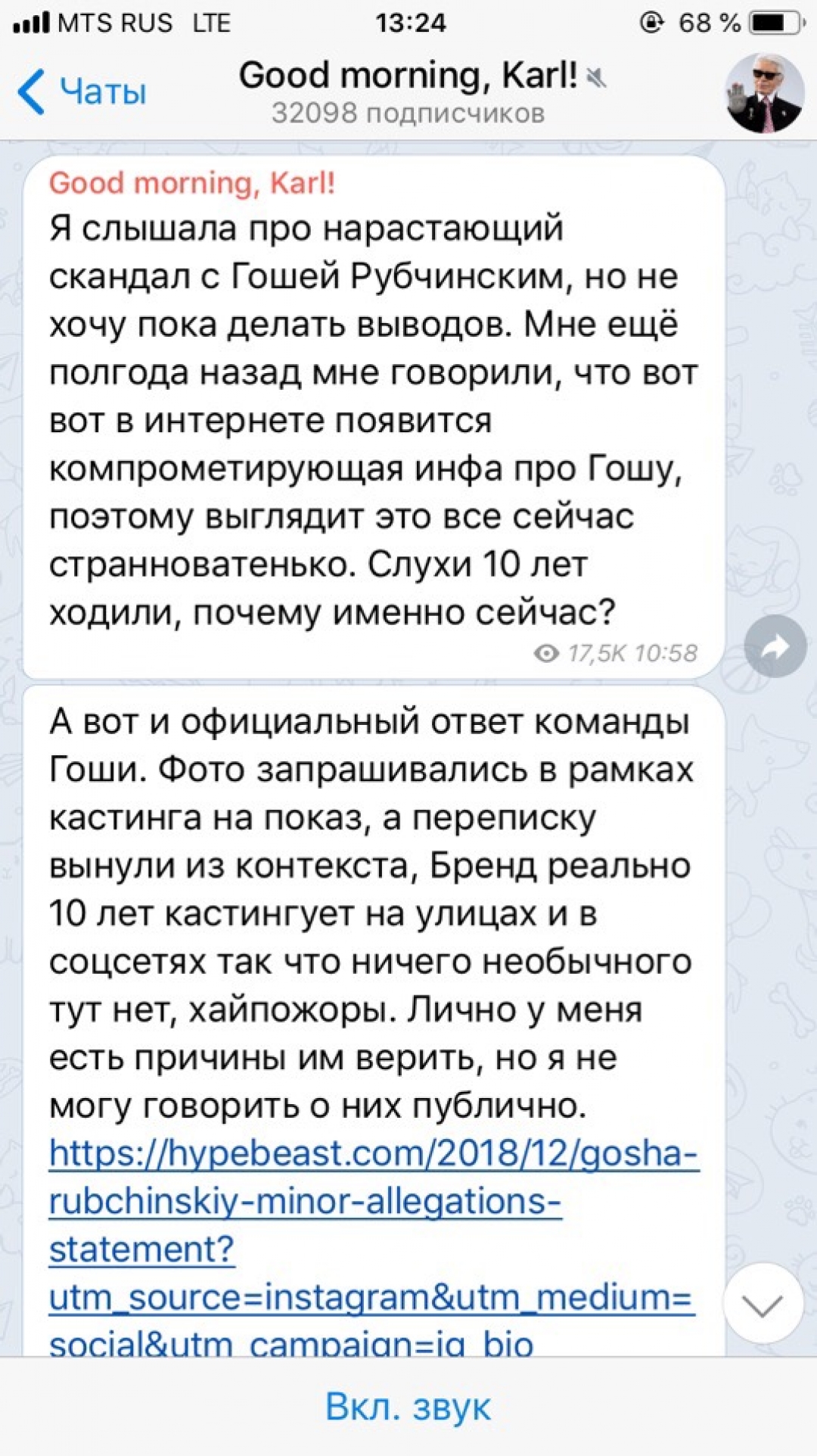 На почве скандала в Telegram даже появился канал «Хэллоу Мистер Гоша», где появляются новые подробности и комментарии. «Наша цель — не уничтожить Гошу, не разрушить его жизнь, карьеру, не разжигать травлю. Цель нашего канала бороться с лицемерием и двойными стандартами. Когда одним можно все, а другим — ничего. Мы — новые Зорро! Пришло время социальной ответственности. Наш канал об этом. Гоша — лишь первый шаг», — пишут авторы.
