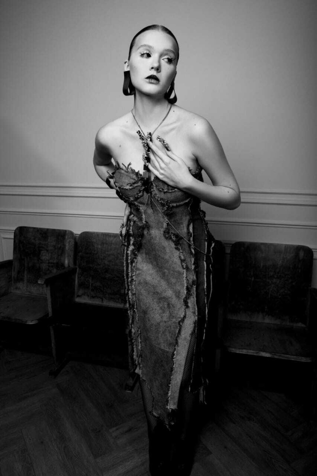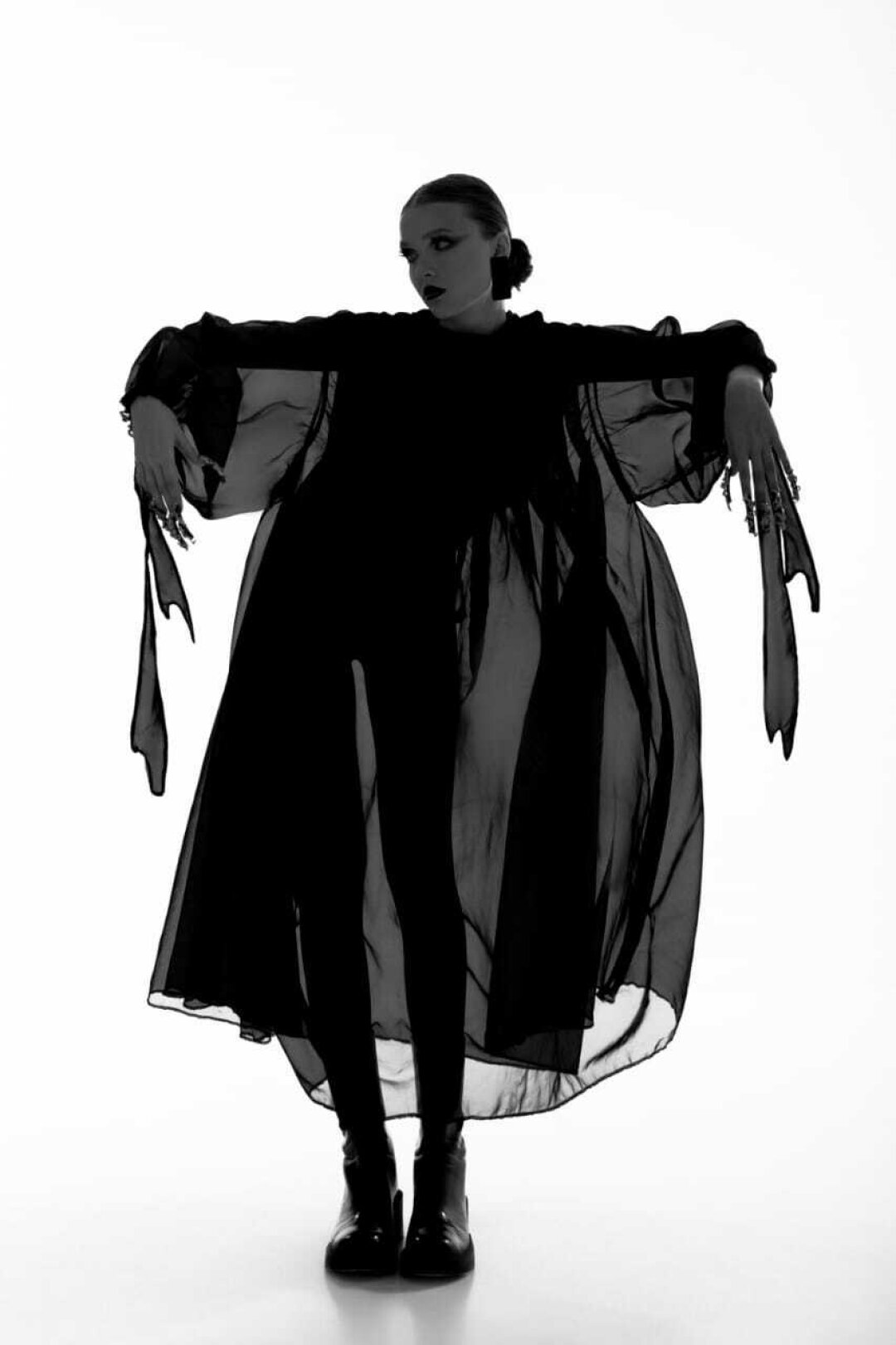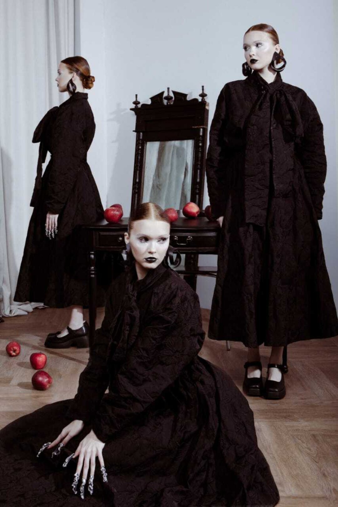 «Я написала себе сценарий на много лет вперед и проживаю его в реальном времени. Каждый новый этап — новая коллекция и новый фильм. Первая серия уже была показана на Московской неделе моды, а вторая “Катарсис” — происходит сейчас. Именно ее я представила на конкурсе “Новые имена в моде”. Коллекция повествует о возрождении, переходе из ада в реальный мир. В данный момент мы с ней на земле, проходим перерождение», — объясняет свою идею Анита.