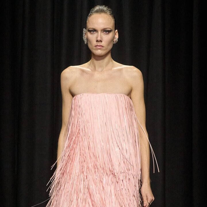 После триумфального камбэка на показе Prada SS'24 бахрома не покидает подиум третий сезон подряд (спасибо бохо-шику, как у Schiaparelli!) — прижилась не только на платьях Jil Sander и Erdem, но и в виде мермейдкорных сетей Dilara Findikoglu, панк-ремешков Hodakova, раритетных абажурных кисточек Dries Van Noten, канатных жгутов Alaïa и сумрачной чешуи Rick Owens (платья из нее сплетены по типу кольчуги).
