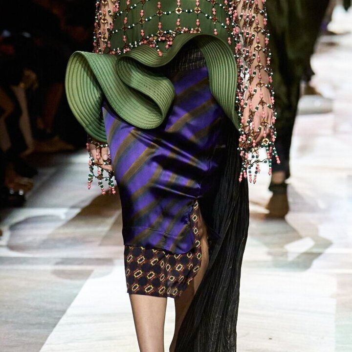 Тихая роскошь — аут, театральный кэмп — ин! Гротескные шик-луки одобрил не только пионер фэшн-кэмпа Алессандро Микеле в Valentino, но и Джулиан Клаузнер aka преемник Дриса Ван Нотена (первую самостоятельную коллекцию для бренда показал на театральных подмостках оперы Гарнье). Аналогичные щедробуржуазные луки увидели у Chanel, Undercover и Versace. Фанфэкт: свою прощальную коллекцию для бренда Донателла Версаче посвятила раритетным одеялам Home Signature из 1990-х — тем самым, в продаже которых преуспел петербургская фэшн-легенда Никита Кондрушенко!