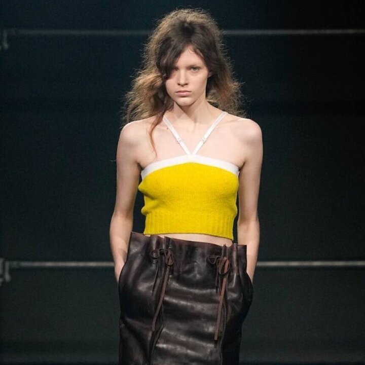 Миди-юбки вежливо подвинули ретро-мини из 1960-х — как и с бахромой, трендсеттером выступила Миучча Прада, еще в сезоне FW'24 переодевшая нас в суровые шерстяные юбки из 1940-х. На этот раз Миучча предлагает сочетать миди не с яркими фуражками, а с цветочными топами-халтерами. Тем временем дизайн-артель Gucci проголосовала за кружевной вариант (примеряем с телесными колготками и серыми кардиганами), новорожденный худрук Blumarine Давид Кома украсил красную юбку-карандаш меховой опушкой, а Демна в Balenciaga напоследок переодел нас в тотал-деним.
