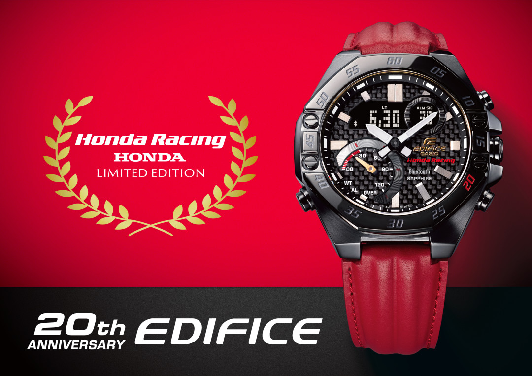 Корпорация Casio Computer Co., Ltd. представляет ECB-10HR — хронограф, выпущенный к 20-летию бренда EDIFICE в коллаборации с Honda Racing. Honda Racing — это автоспортивное направление Honda Motor Company, Ltd., благодаря ему компания выступает по всему миру. Подразделение известно поставкой с 2018 года моторов команде Формулы-1 Scuderia AlphaTauri, которую также поддерживает бренд EDIFICE. Новые часы — уже третья коллаборация Honda Racing и EDIFICE. Обе компании происходят из Японии, обе страстно стремятся задействовать высокие технологии.